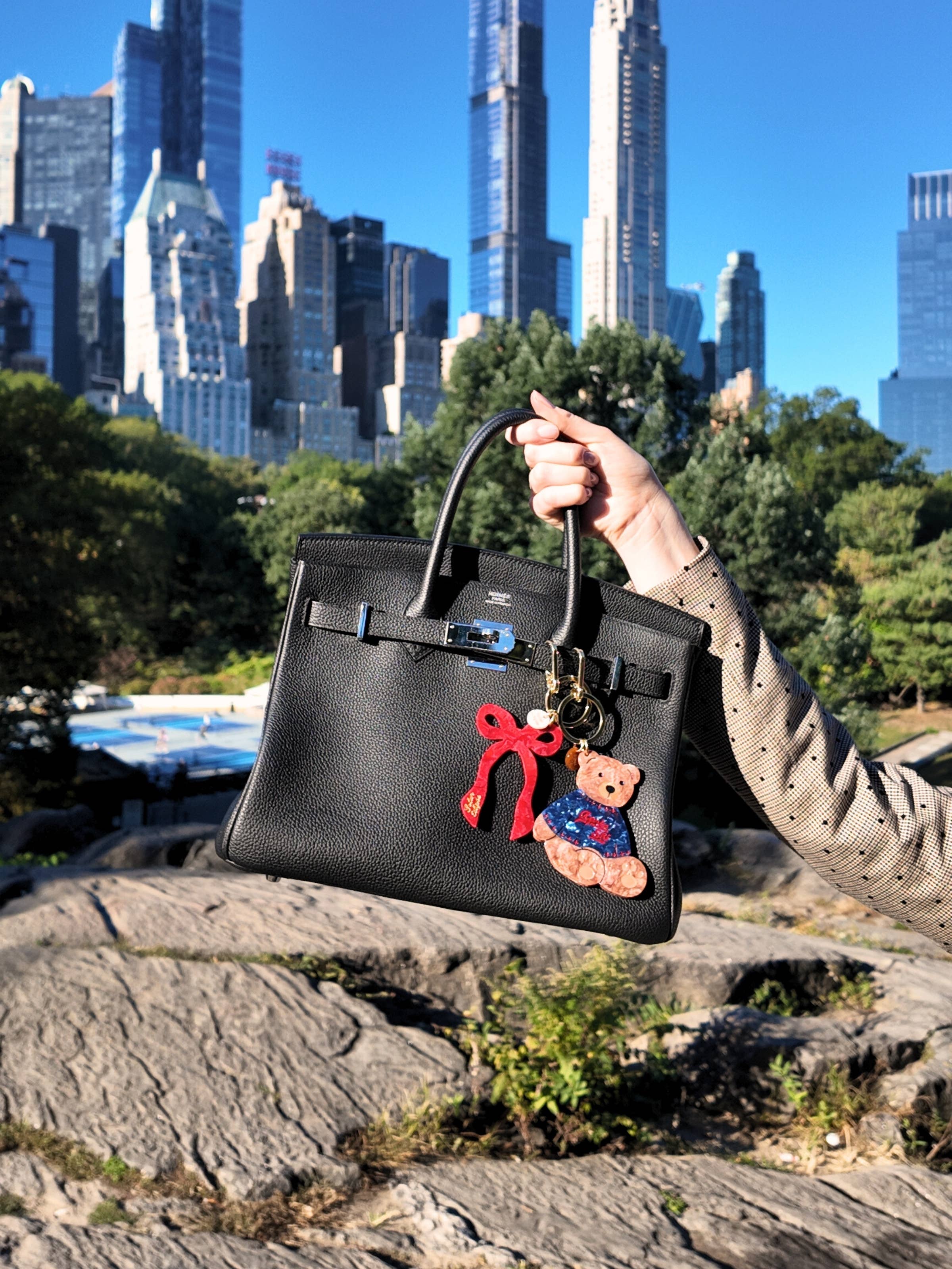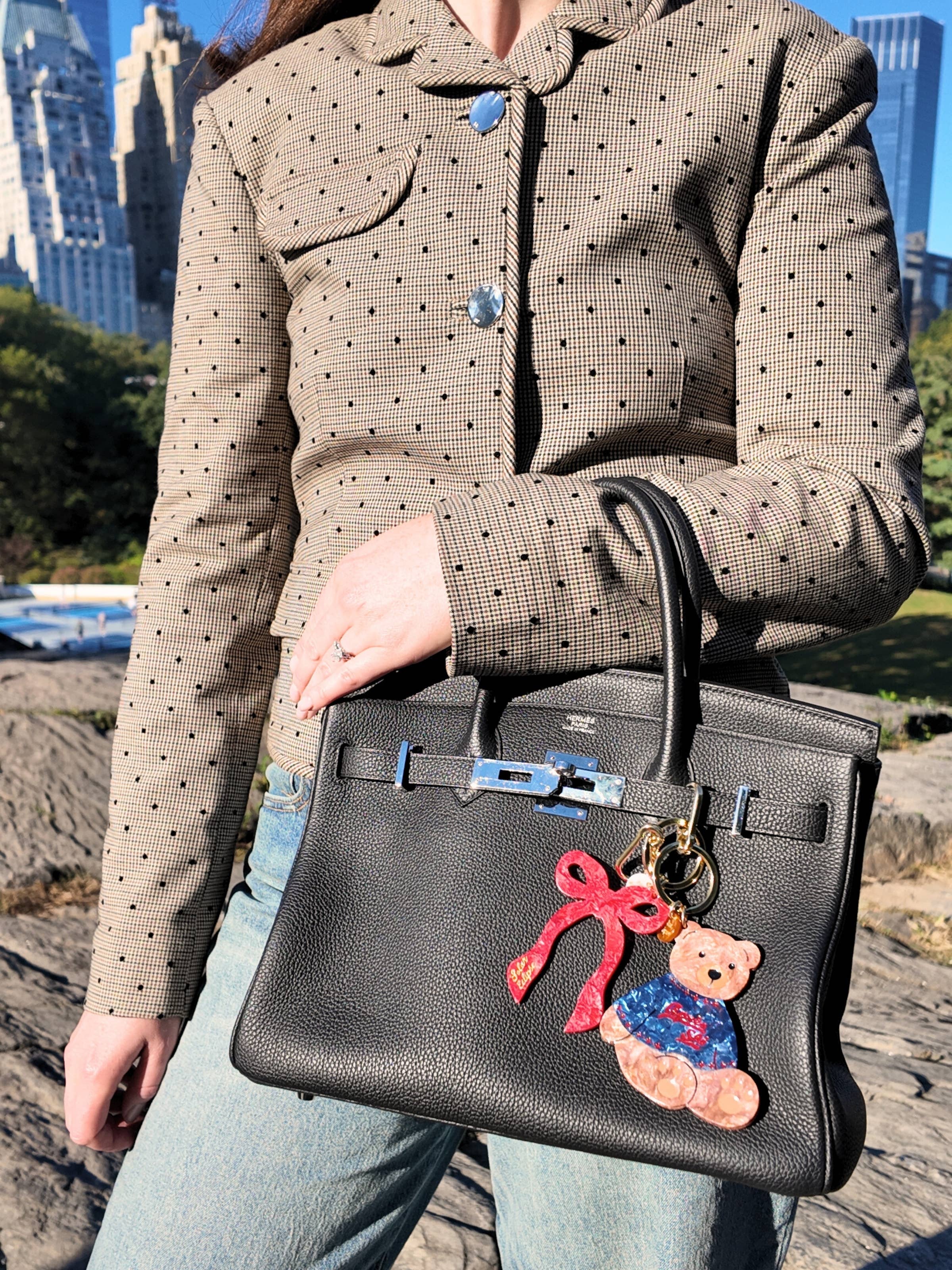 Hand-painted Apres Ski Teddy Bear Bag Charm + Keychain