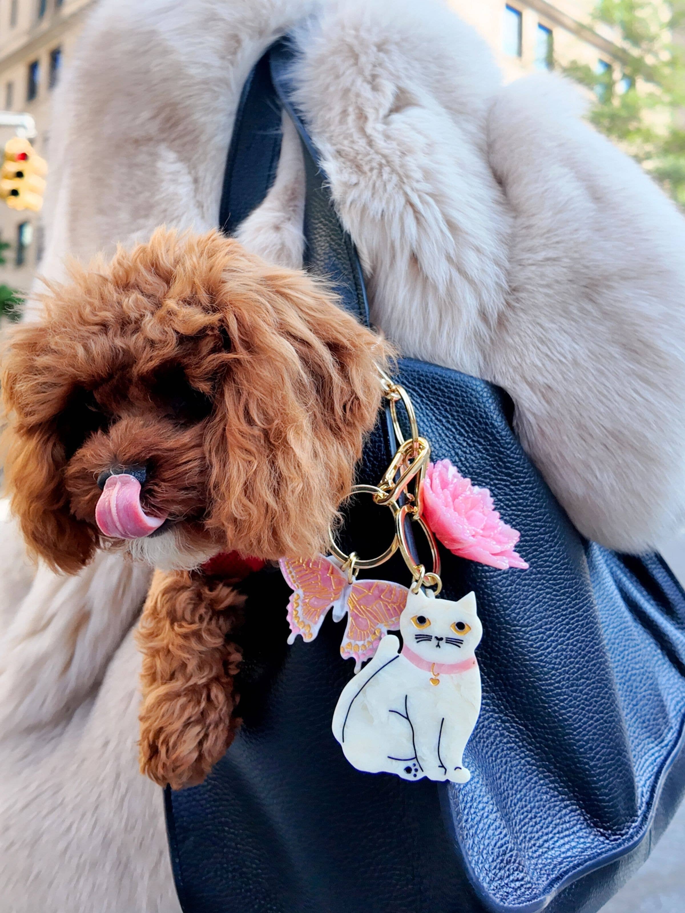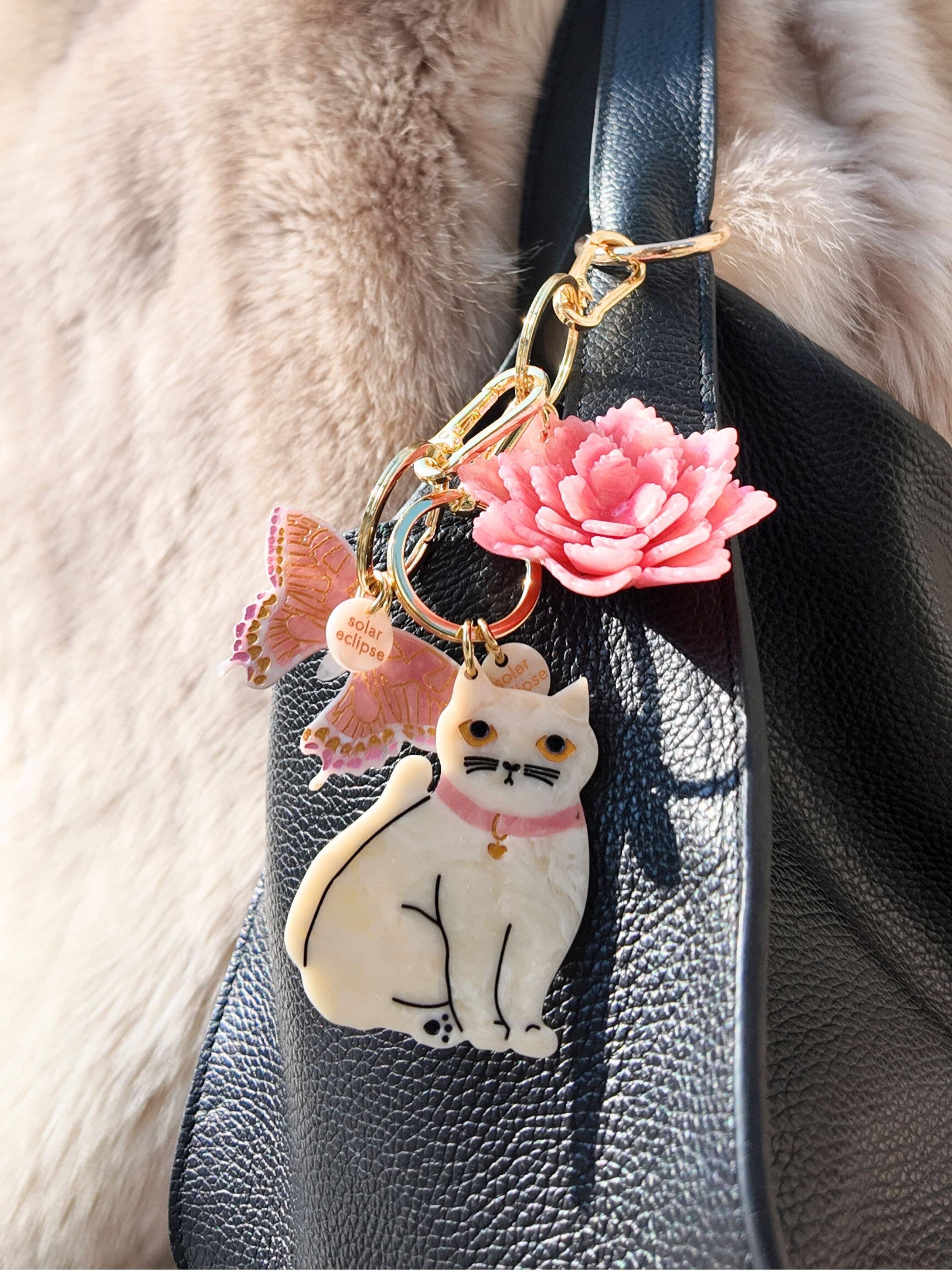 Hand-painted Kawaii Cat Bag Charm + Keychain | Eco-Friendly