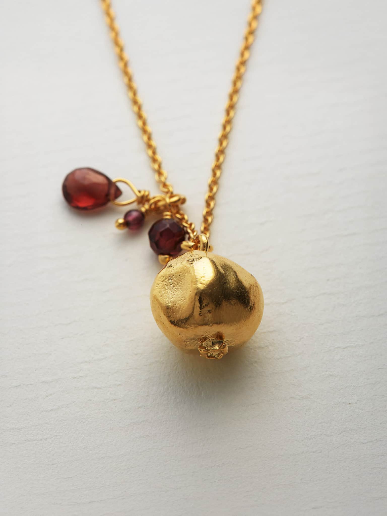 A symbol of beauty and abundance, our juicy Pomegranate Necklace is accented with a trio of vibrant garnets. Alex Monroe Jewellery is inspired by nature and handcrafted in our London Workshop.