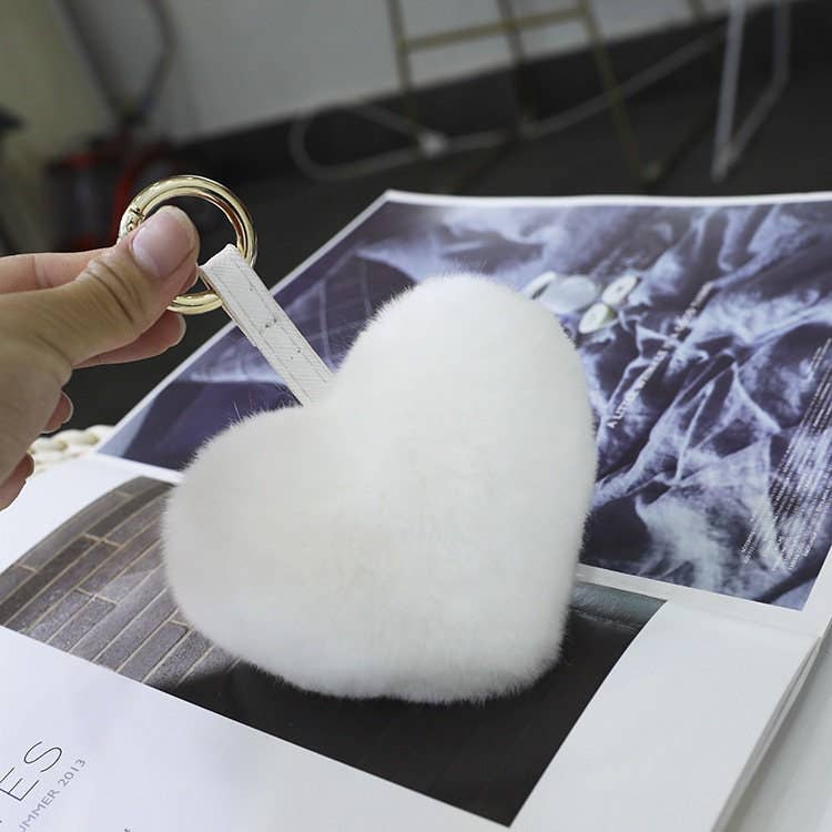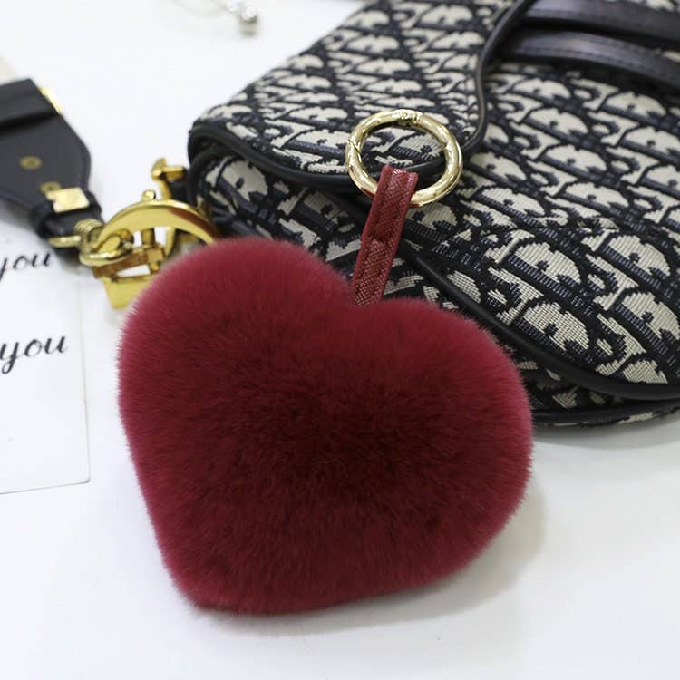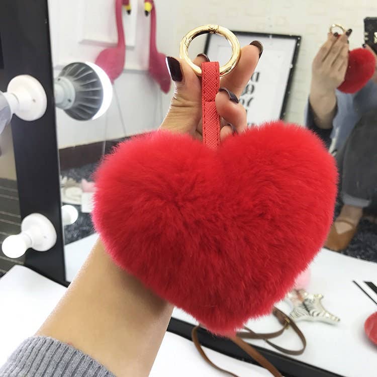 Rex Rabbit Hair Heart-Shaped Key Chain Bag Accessory