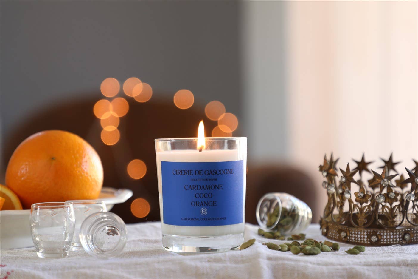 Bring comfort into your room with this scent, a blend that evokes sunlit kitchens' coziness and the Mediterranean's vibrancy. The spiced sweetness of cardamom, the creamy undertones of coconut, and the zest of orange create a sophisticated fragrance.