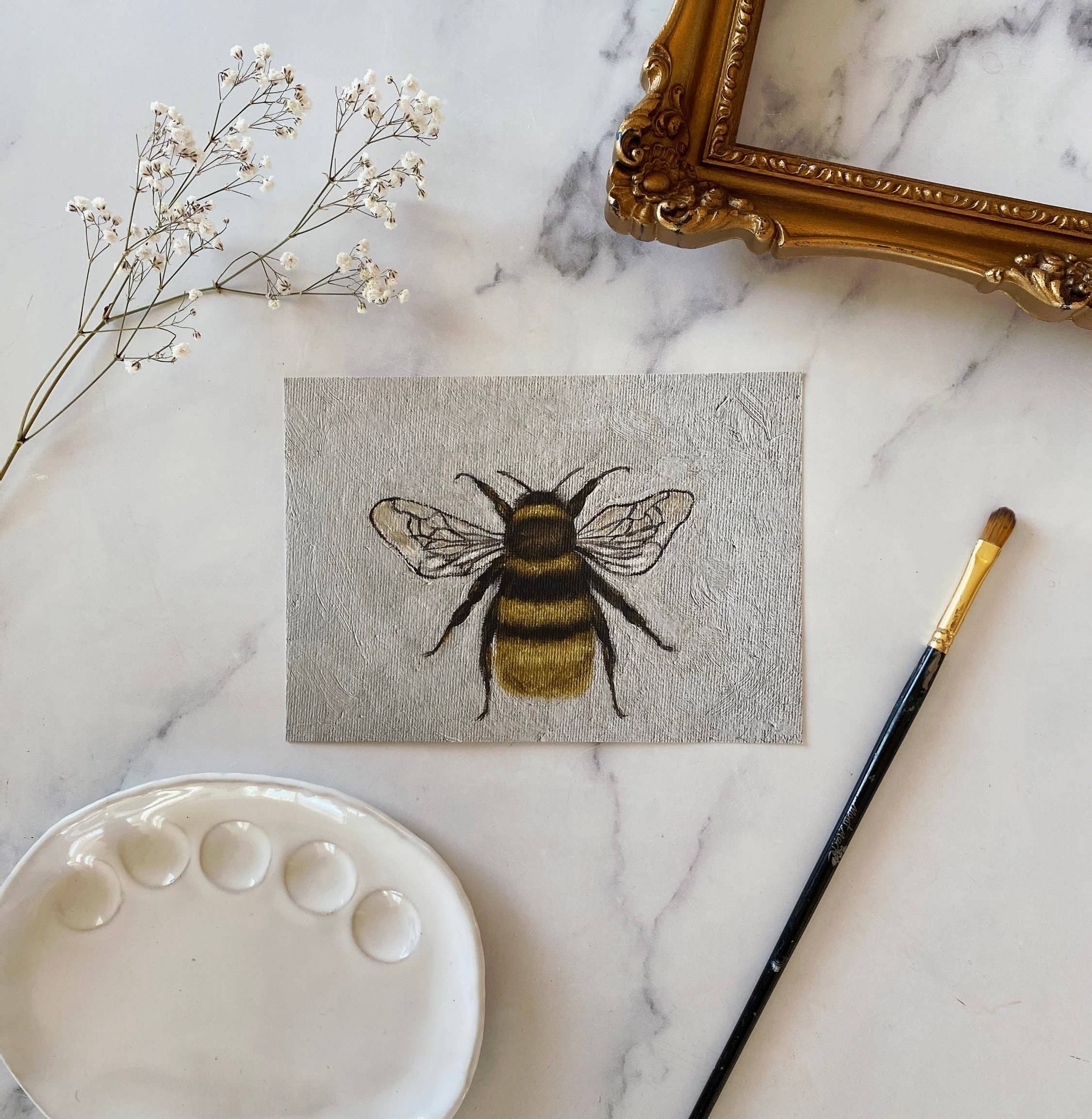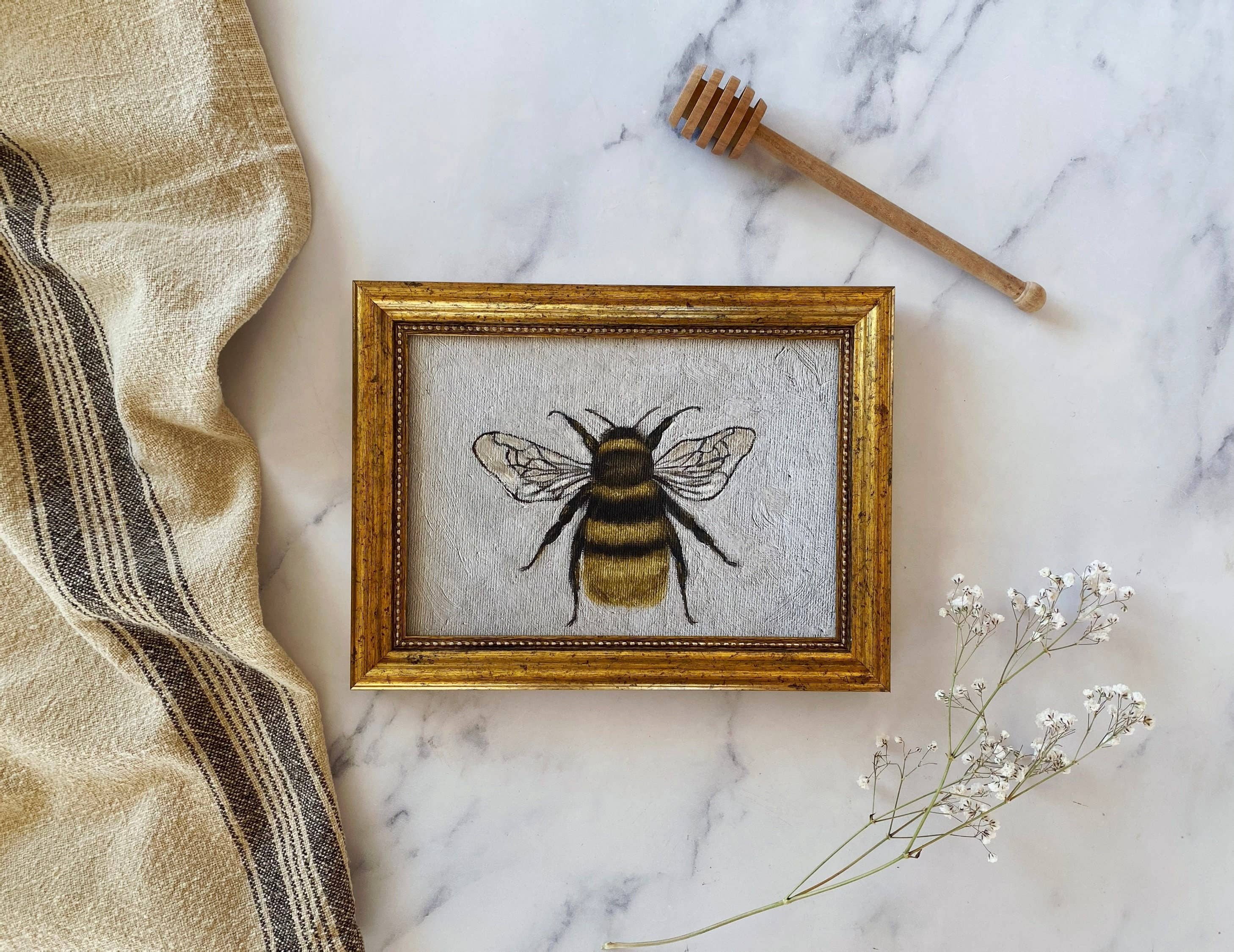 BEE WELL: A classic little study with delicate wings and bold stripes. This piece brings a bit of charm and buzz to any wall, with a vintage feel and timeless appeal. Perfect for kitchens, garden rooms, or as a sweet accent in a gallery wall. Pairs beautifully with “Hive Sweet Hive” for a cheerful, nature-inspired duo. PRINT DETAILS: ✔ Premium-quality Giclée reproduction of my original oil painting ✔ Printed with museum-quality ink on archival fine art paper ✔ Available in 5x7" ✔ Unframed *Prints are shipped ready to display in a clear sleeve with backing board and KKS logo sticker on front.