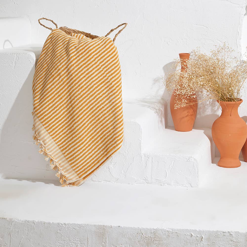 So whether you're looking for a fun and functional beach accessory or just want to add a touch of bohemian style to your bathroom, our Stripe Bubble Turkish Bath Towels are the perfect choice.