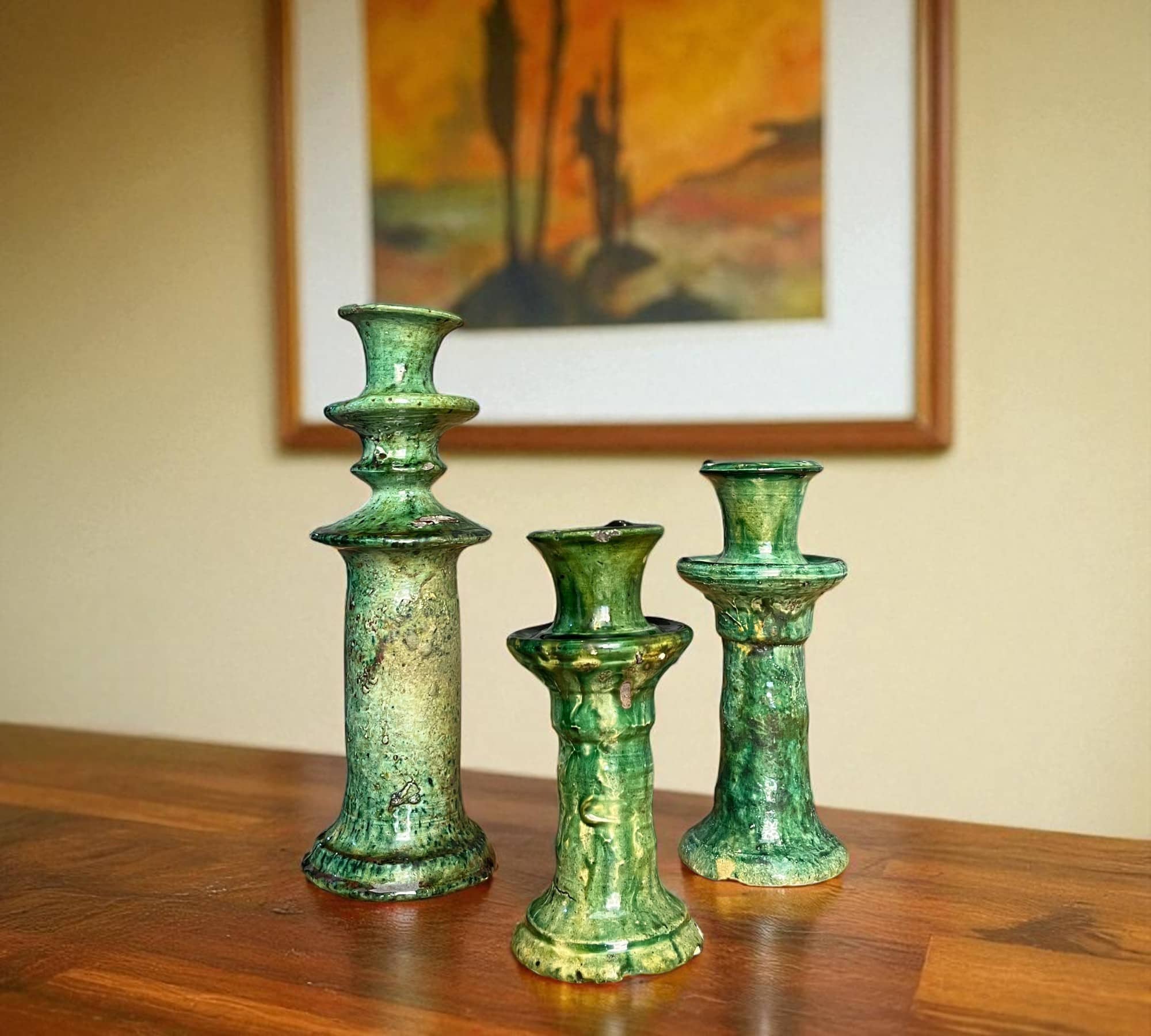 Handmade Tamegroute Candleholders – Tall Green Moroccan Pottery