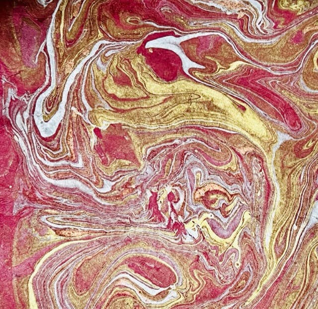 Experience the elegance of Giftsland's 30x20 Marble Paper. Infused with gold, silver, and copper on a luscious raspberry background, this flat wrap paper is perfect for any occasion. Handmade in Nepal by small scale industries and women coops, this paper embodies eco-friendliness and tradition. Made from the bark of the Daphne plant, it's a natural choice for those who appreciate beauty and sustainability. Enhance your gift-giving with our unique, artisanal wrapping paper.