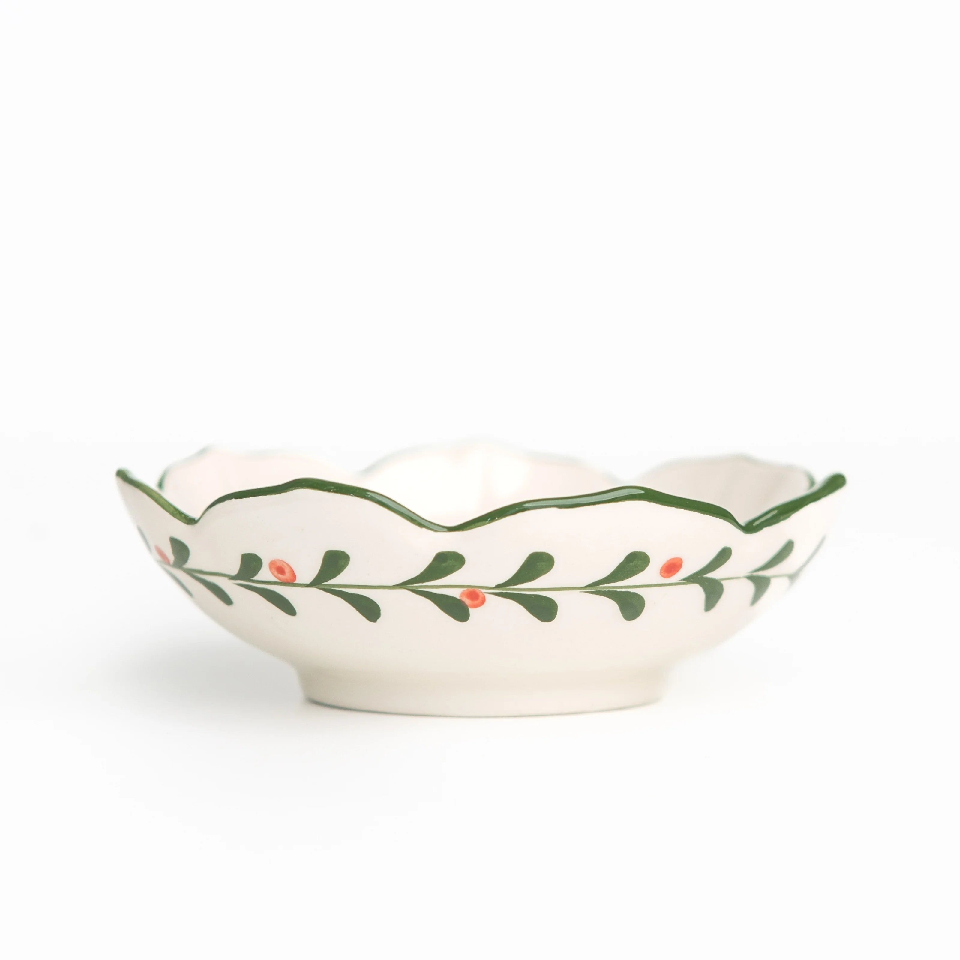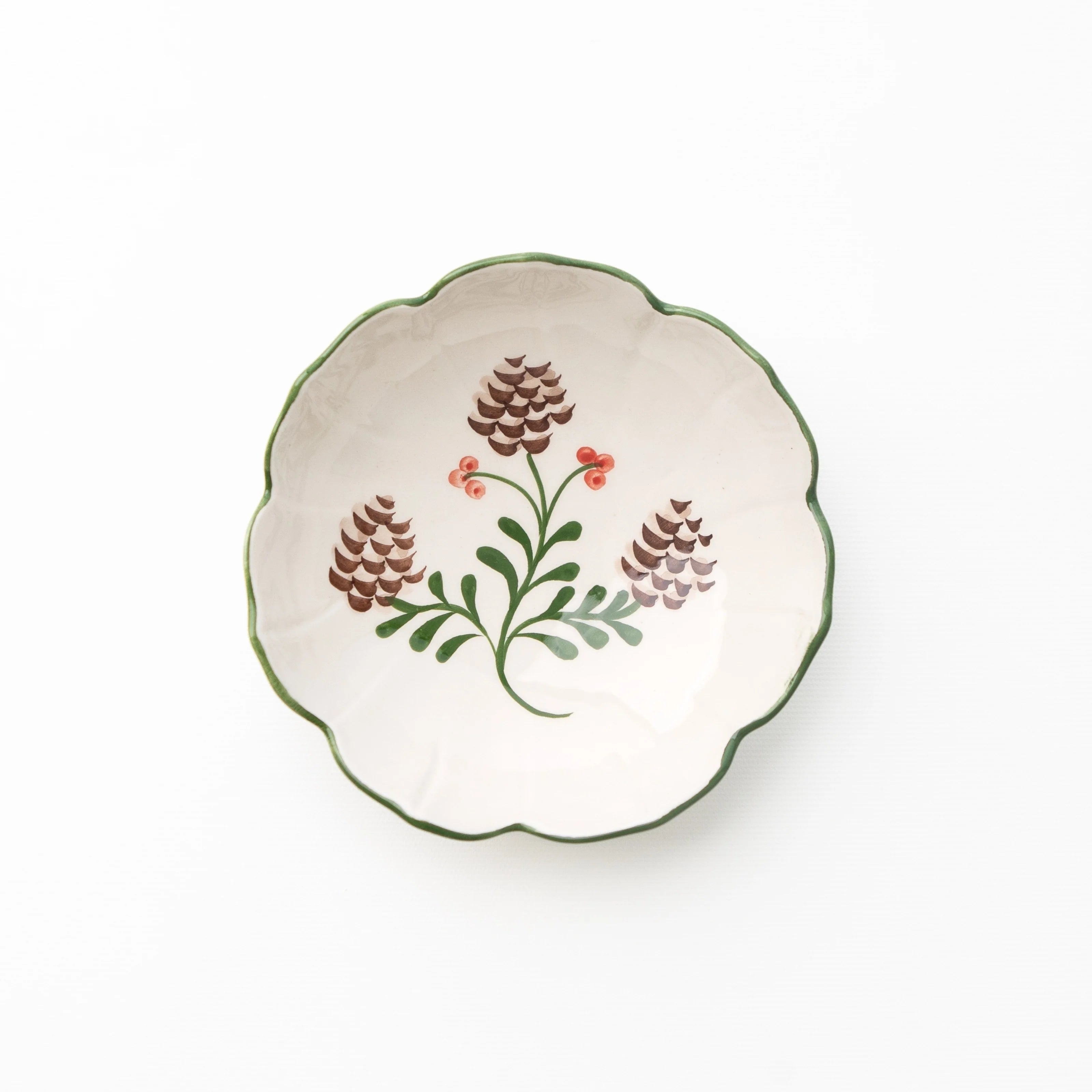 Add a festive touch to every course with our Holly & Pinecone Small Serving Bowls. Hand-painted with pinecones, holly sprigs, and evergreen detailing, these ceramic bowls bring timeless holiday charm to your table. Perfect for nuts, sauces, or side dishes, they blend beauty and function for effortless entertaining.