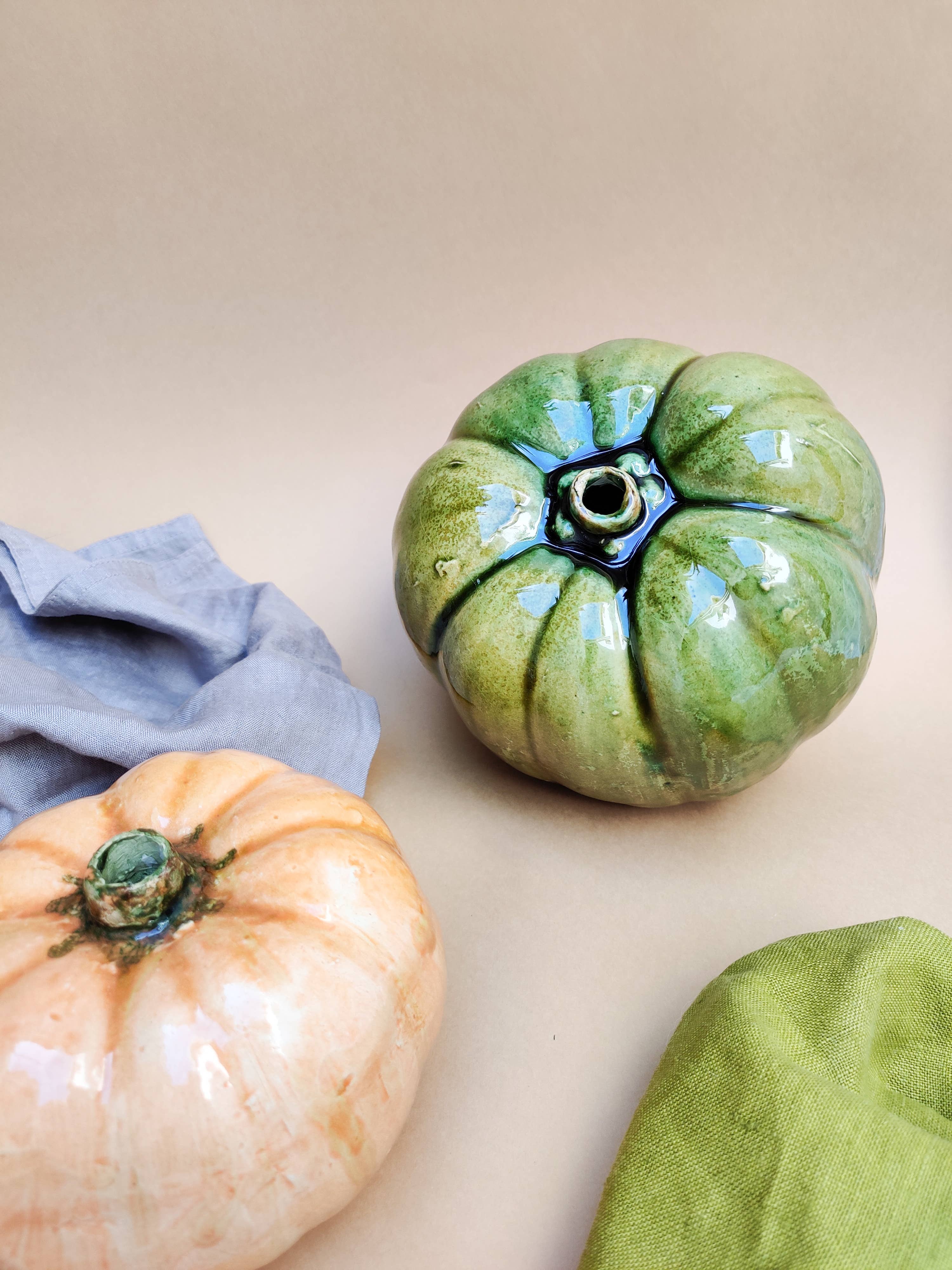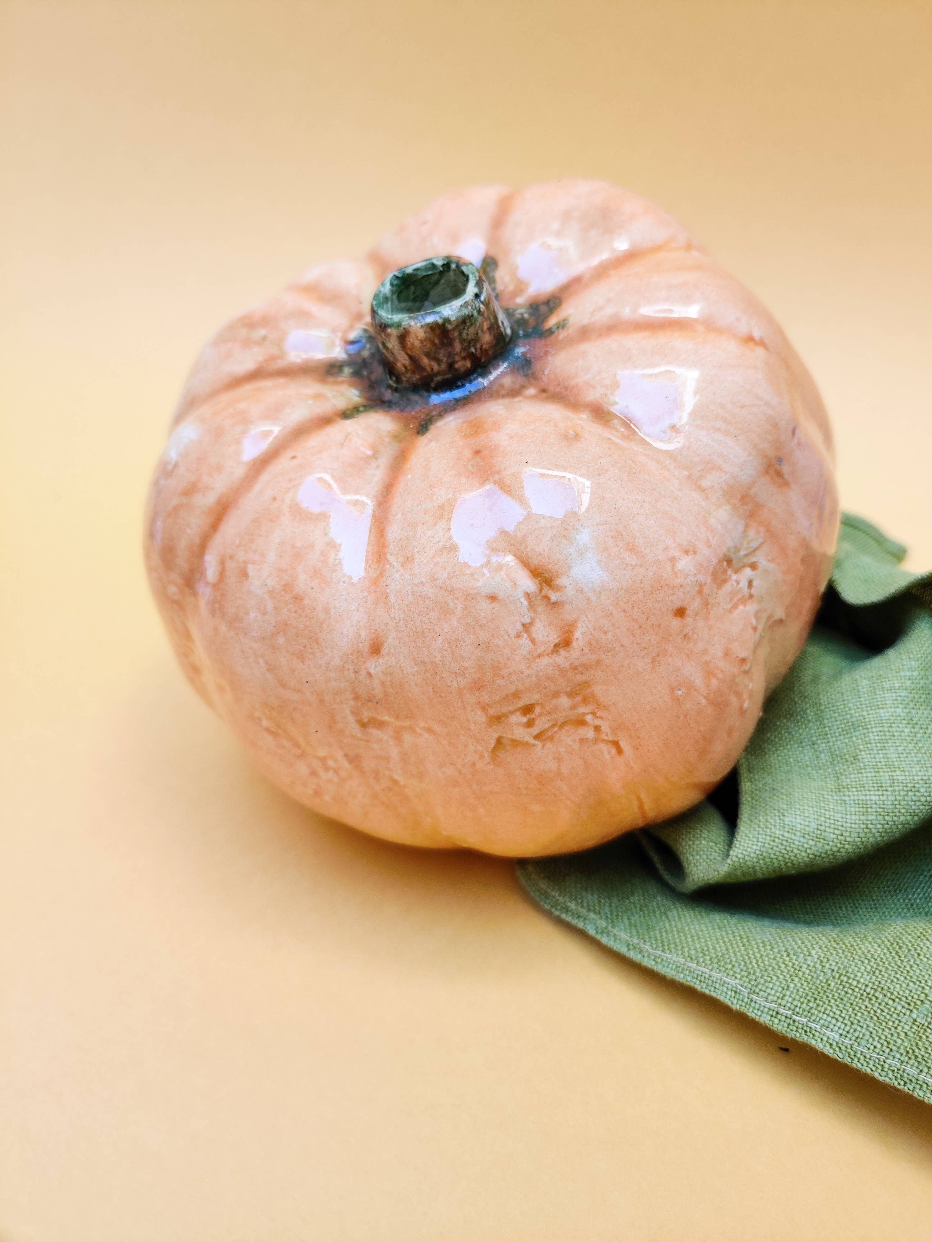 Great ceramic reproduction of a pumpkin. We can offer two styles, one is big at 18x15 cm and the other is medium at 10x13 cm.
