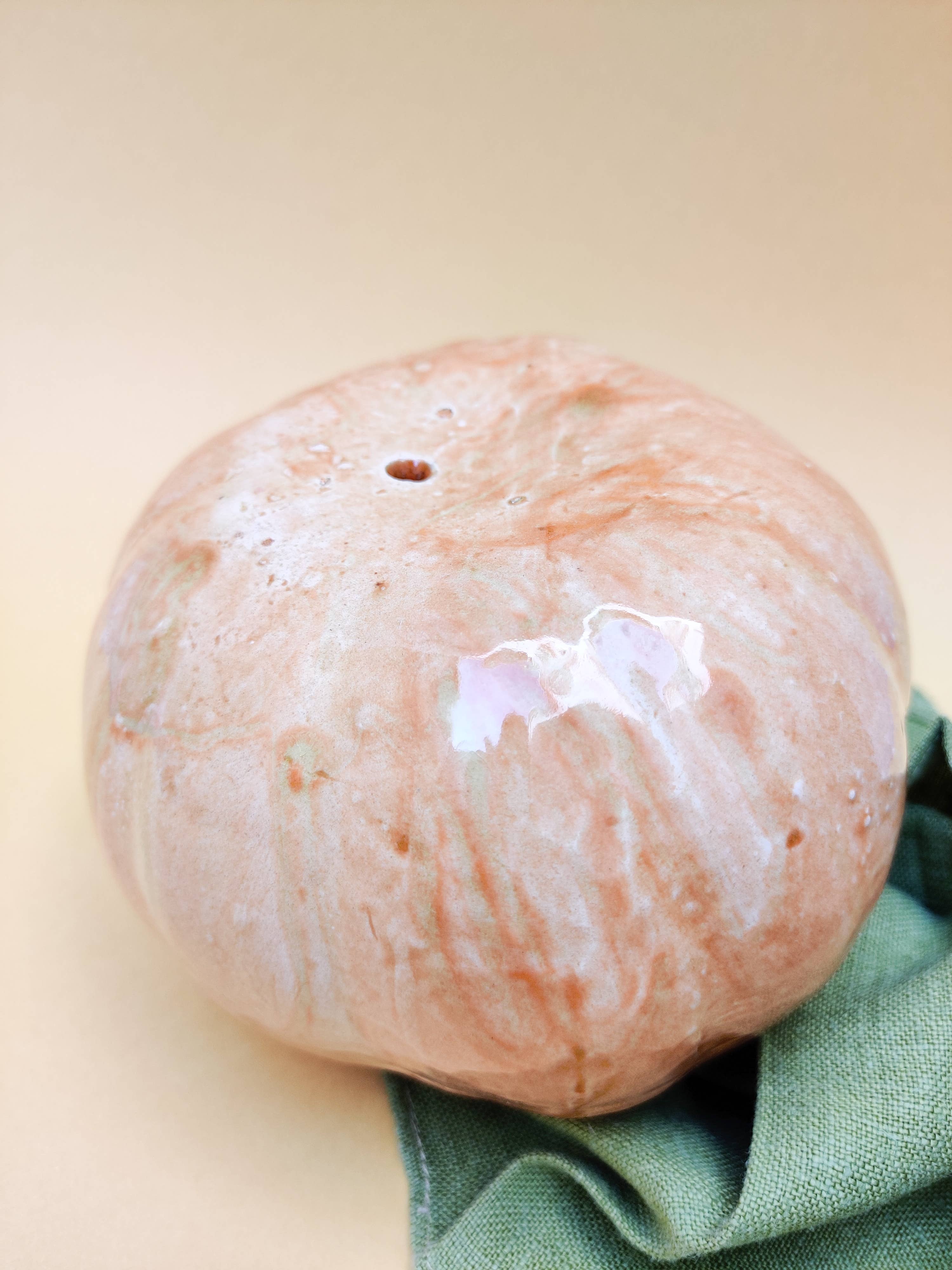 Each pupmkin is made individually and differences in shape, size and color may occur, these are happy accidents. All fruits are hollow.