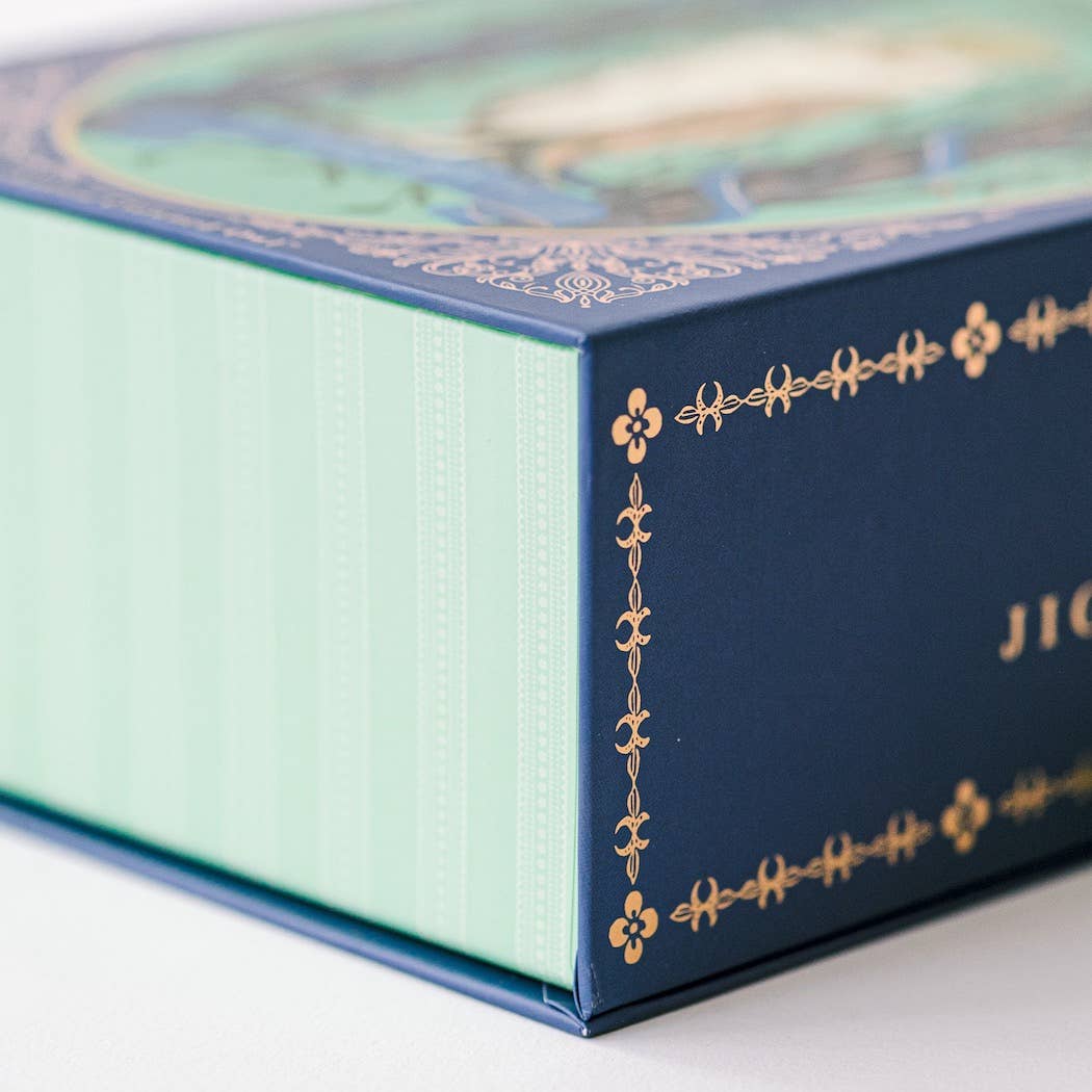 -Puzzle comes in a magnetic keepsake box with velvet bag