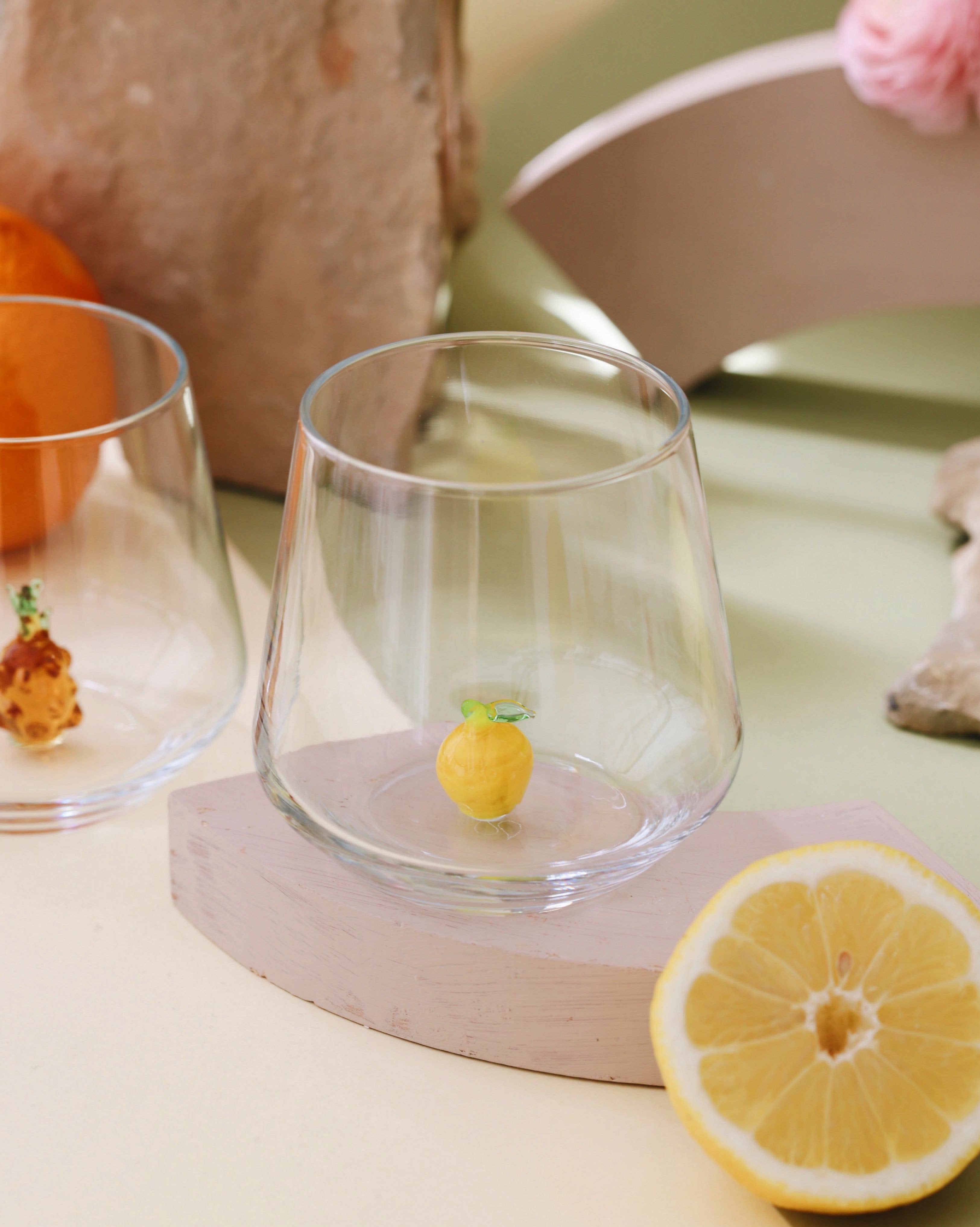 Fruit Theme Drinking Glass with Handmade Figures Step into our world where every glass tells a tale! 🌟 Crafted with care, the animal figure inside each glass is lovingly handmade, adding a touch of whimsy to your sipping experience. But wait, there's more good news! These glasses are dishwasher safe, so you can breeze through cleanup after your wild adventures.