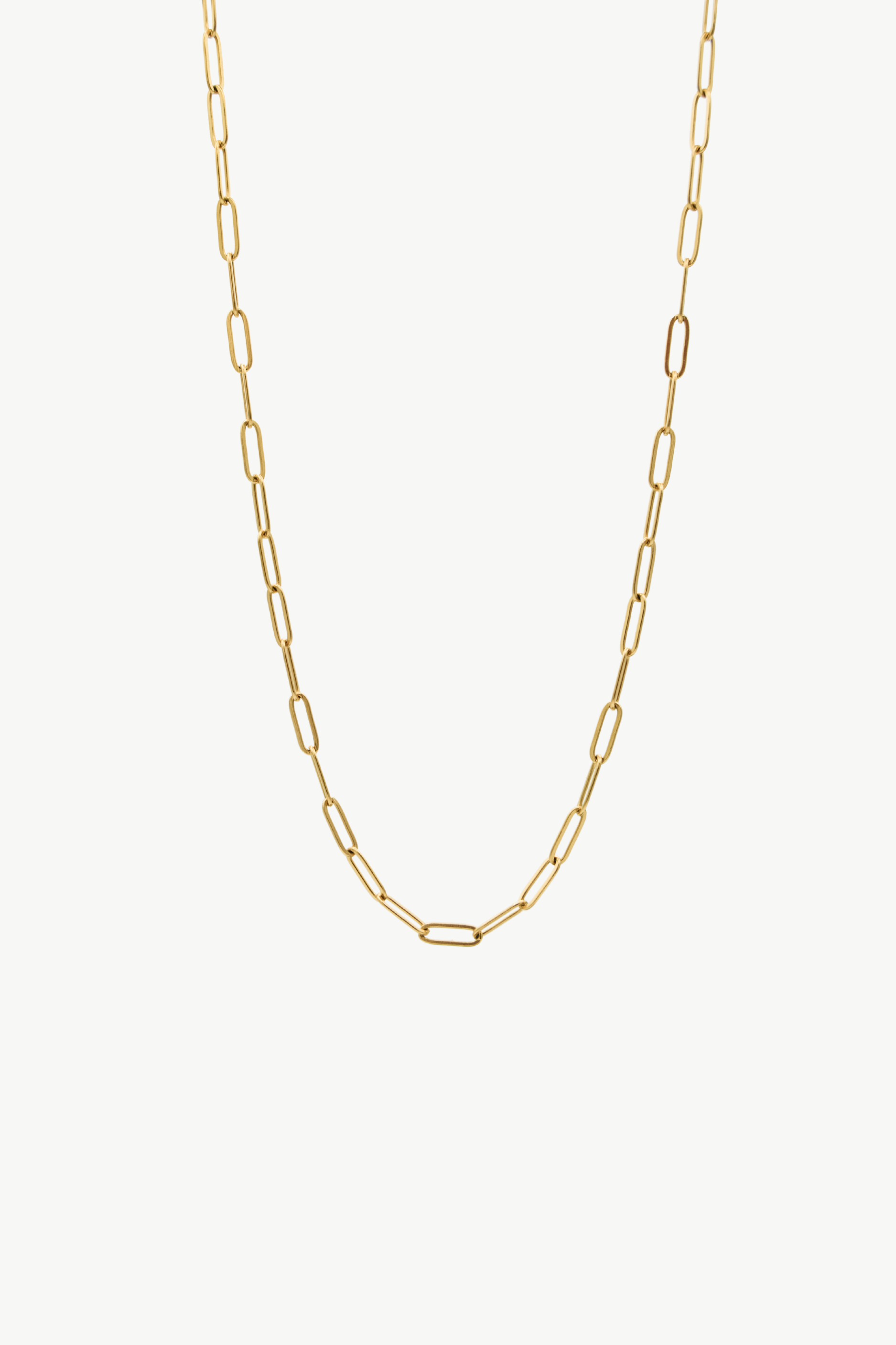 The Magnolia Chain is a striking piece designed with the timeless appeal of a paperclip chain. It’s luxuriously plated with a rich yellow gold, enhancing its beauty and providing a refined finish that exudes elegance. To ensure the longevity of this chain and to protect its radiant glow, the piece is coated with a PVD (Physical Vapor Deposition) finish, which bonds the gold to the stainless steel at a molecular level. This process significantly enhances the durability of the chain, making it resistant to tarnishing, scratches, and fading, and ensuring it maintains its luxurious appearance for years to come. The PVD coating not only offers added protection but also amplifies the depth of the gold’s shine, resulting in a chain that continues to dazzle through everyday wear.