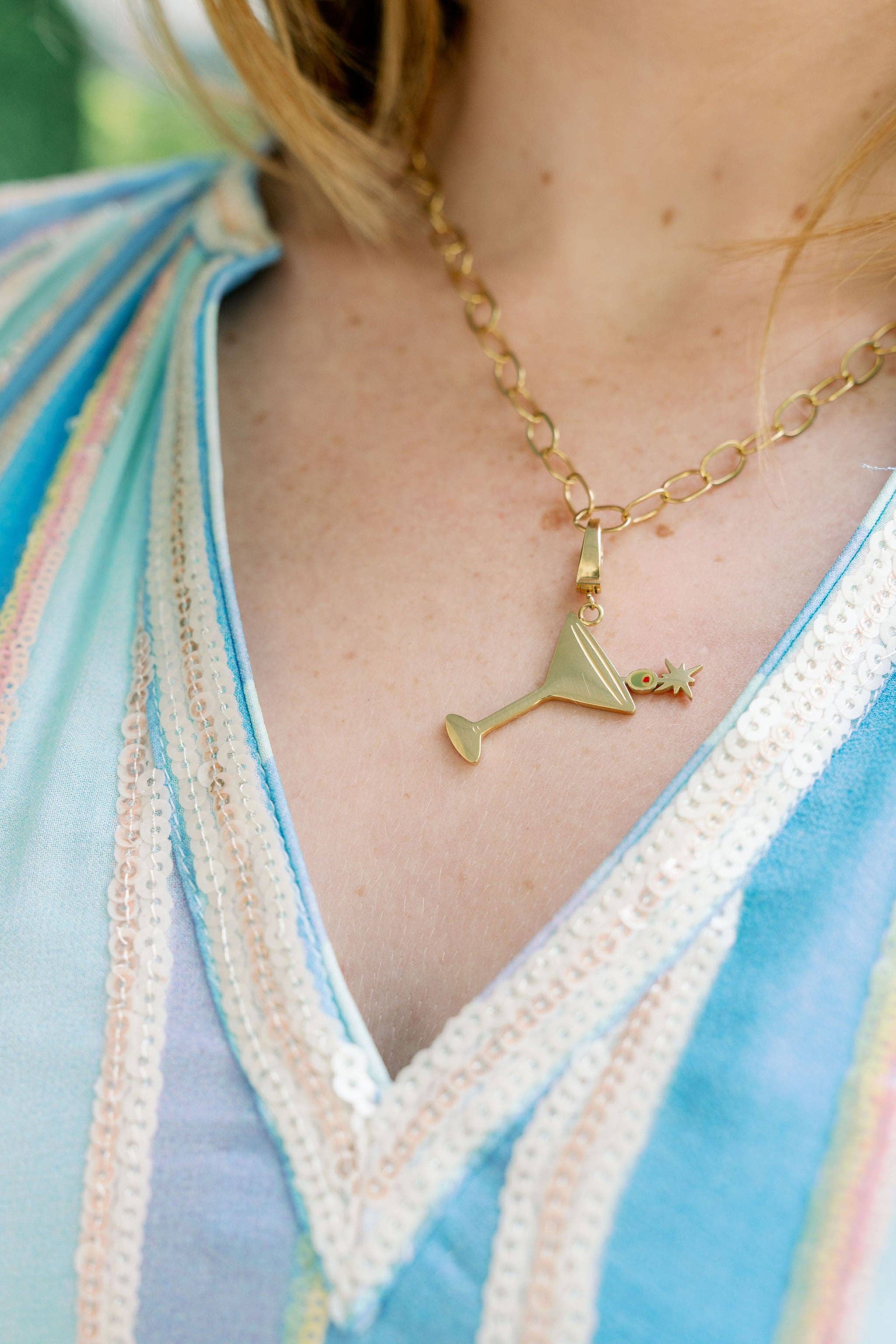 Some nights call for restraint… and others leave you three sheets to the wind—but either way, a martini in hand (or on your neck) is always a good idea. After all, as Johnny Carson once said, happiness is finding two olives in your martini when you’re hungry. Consider this charm your lucky second olive—a little extra delight when you need it most.