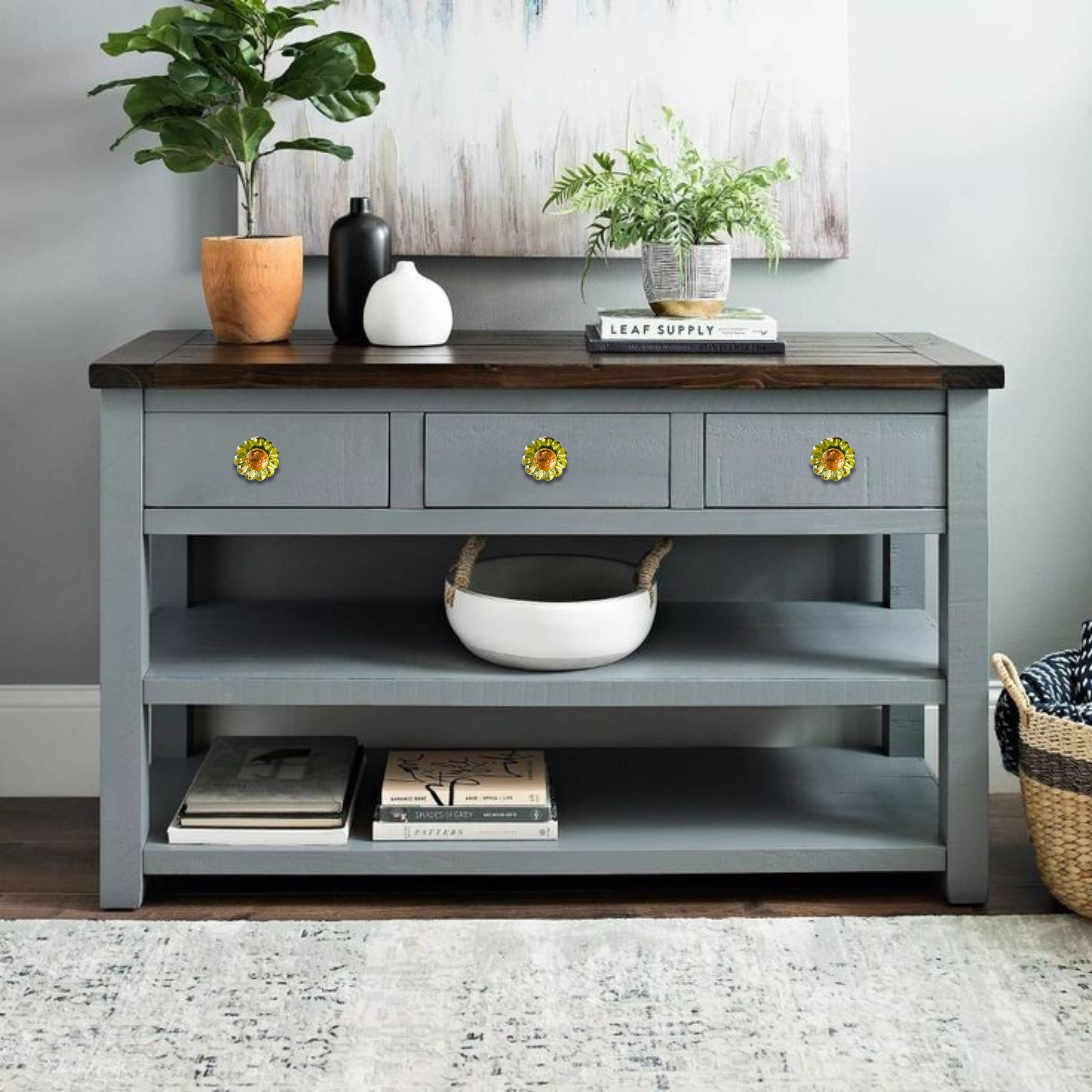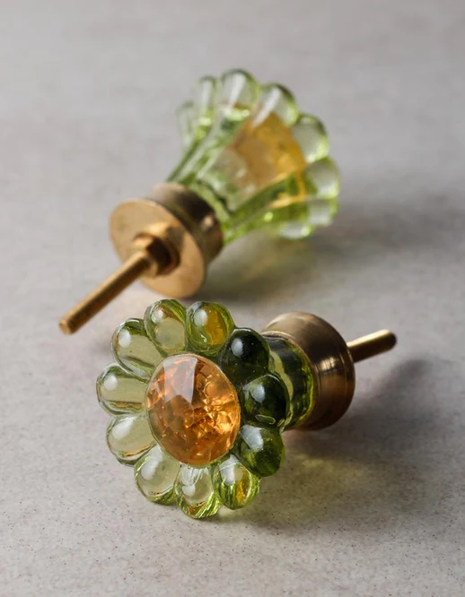 ✴️Moss Green Daisy Flower Glass Drawer Cabinet Knob
