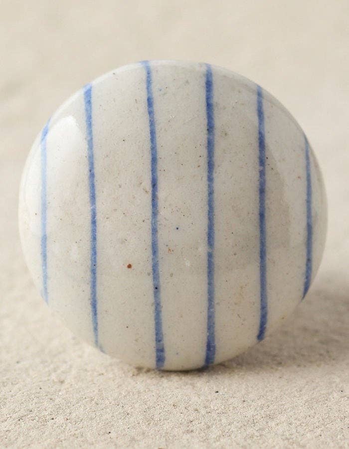 Add a classic, coastal-inspired touch to your furniture with this White and Blue Striped Ceramic Cabinet Knob. Hand-painted with care, this knob is perfect for refreshing kitchen cabinets, dressers, or bathroom drawers with a pop of color and timeless design.