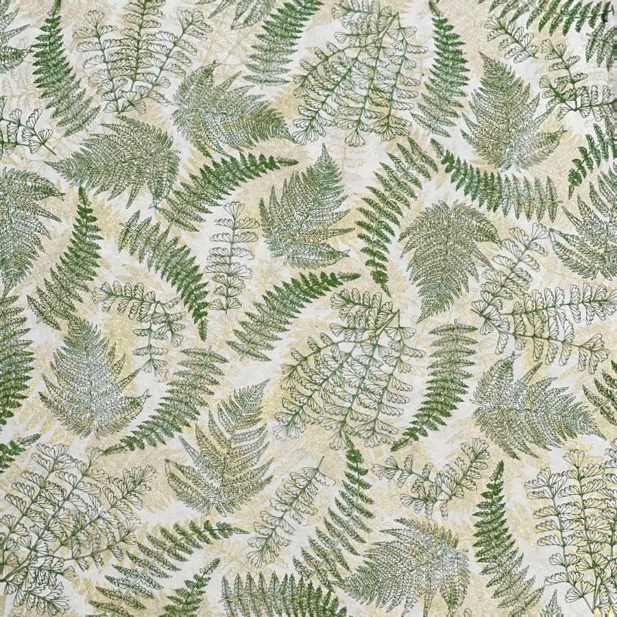 Experience the elegance of nature with Giftsland's 20x30 Fern, Gold & Olive on Cream wrapping paper. This exquisite paper is handmade in Nepal, Transform your gift-giving with this stunning, eco-friendly paper that's as special as the gift inside.