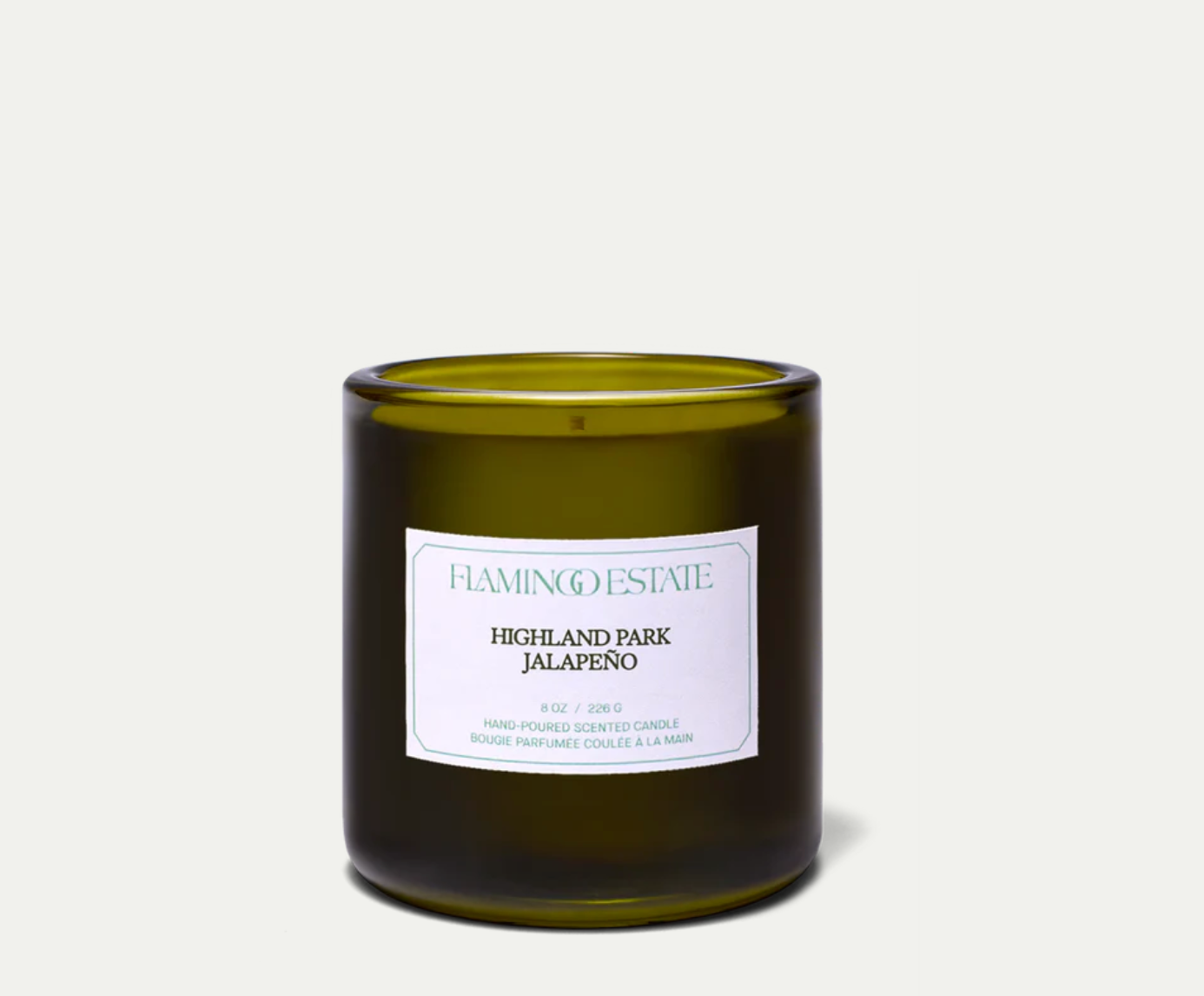 We made a candle that speaks to the buzzing energy of Los Angeles: the city with spice in its veins and a kick in the air. It’s a siren song for thrill-seekers and pleasure-chasers who are willing to risk it all. It’s all things wild and brisk, tingling the nose with a sharp bite, reaching the roof of the mouth, lingering deep with glowing neon green. Highland Park Jalapeño is a bold olfactory ode to our home. It grinds together fresh Coriander Seeds, sun-warmed Thyme, resinous green Galbanum, and ripe Jalapeños bursting with bite.