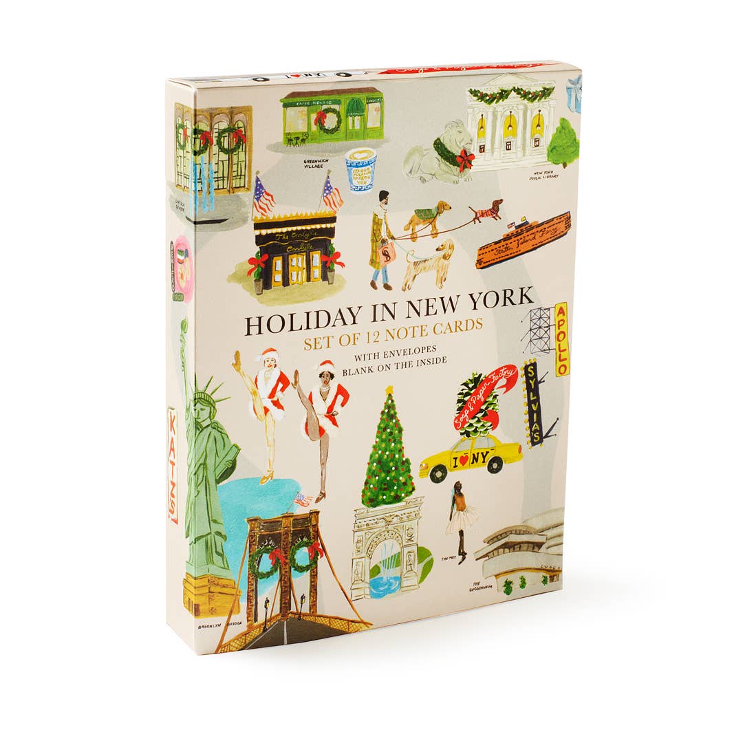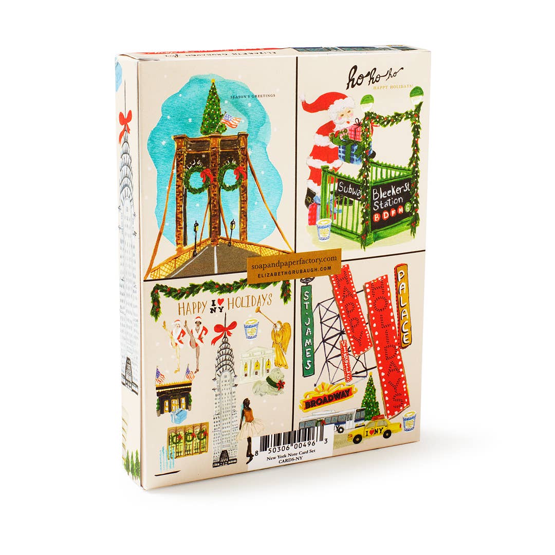 This delightful boxed card set comes with 12 cards, 3 of each design. Designed by Elizabeth Grubaugh for Soap & Paper Factory, each card features an iconic and festive illustration of New York, all dressed up for the holiday season!