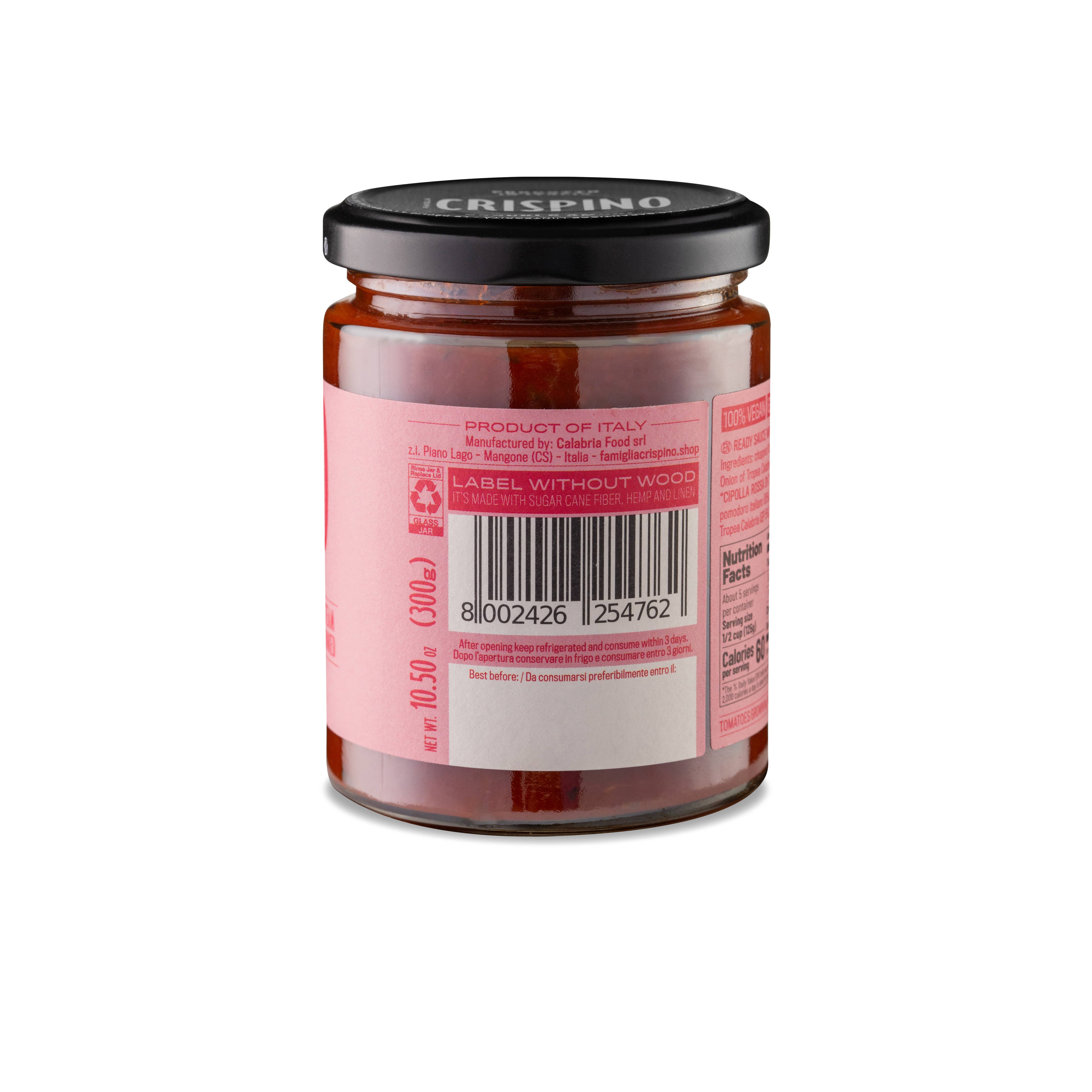 Made with pulp of Italian (Calabrian) tomatoes and diced red onions from Tropea PGI. A sweet and intense flavor. Just pour it over the freshly cooked pasta and sauté it in the pan for a minute. Quick to use, but without sacrificing taste.