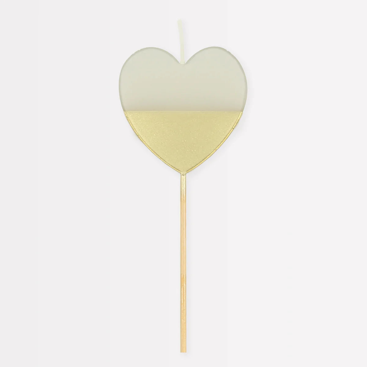 Why have a plain candle, when you can have one with shiny stylish gold details? This heart candle is ideal to add a romantic touch to a special cake.