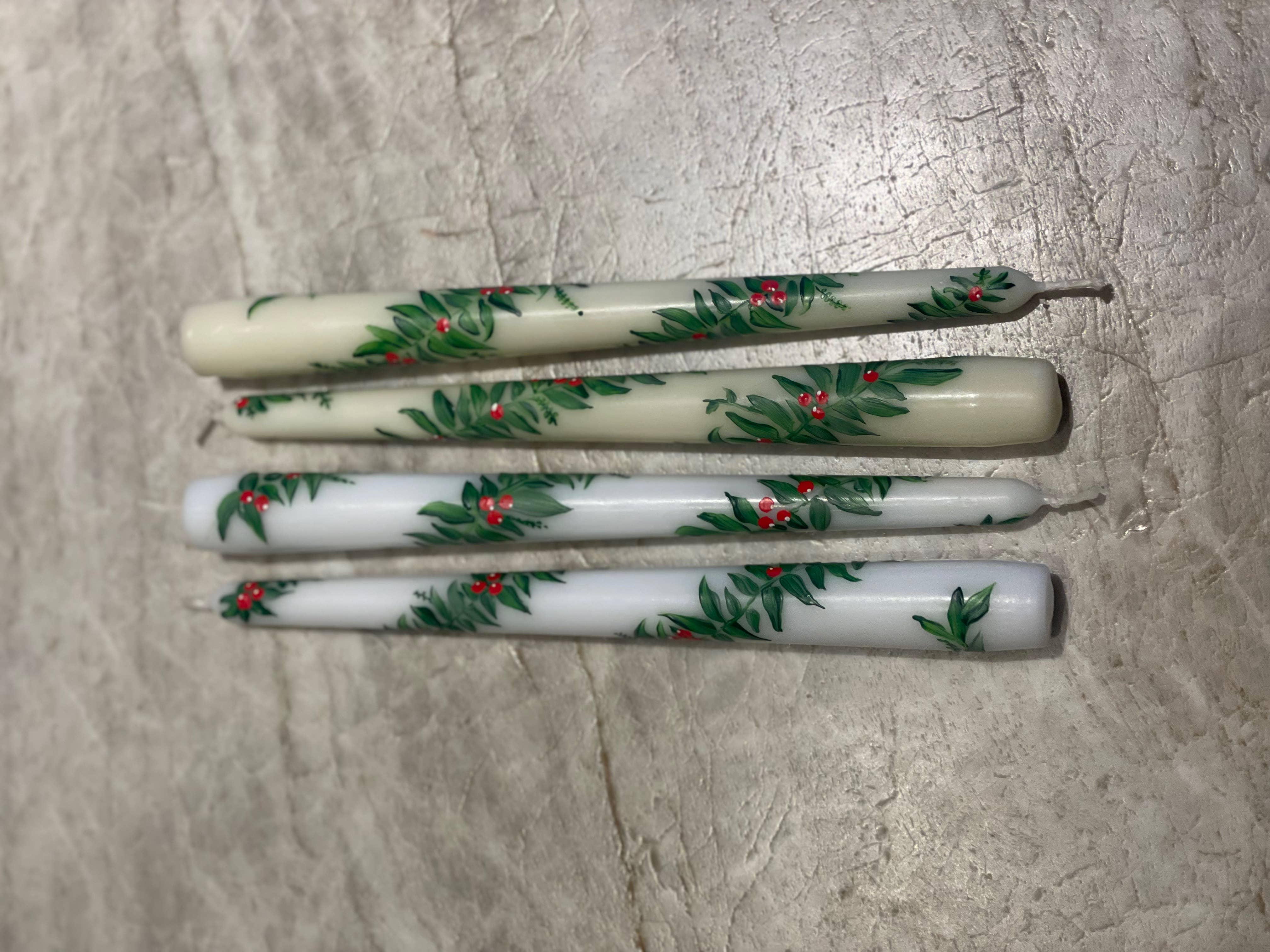 Holiday Hand-Painted 10" Taper Candle Pairs