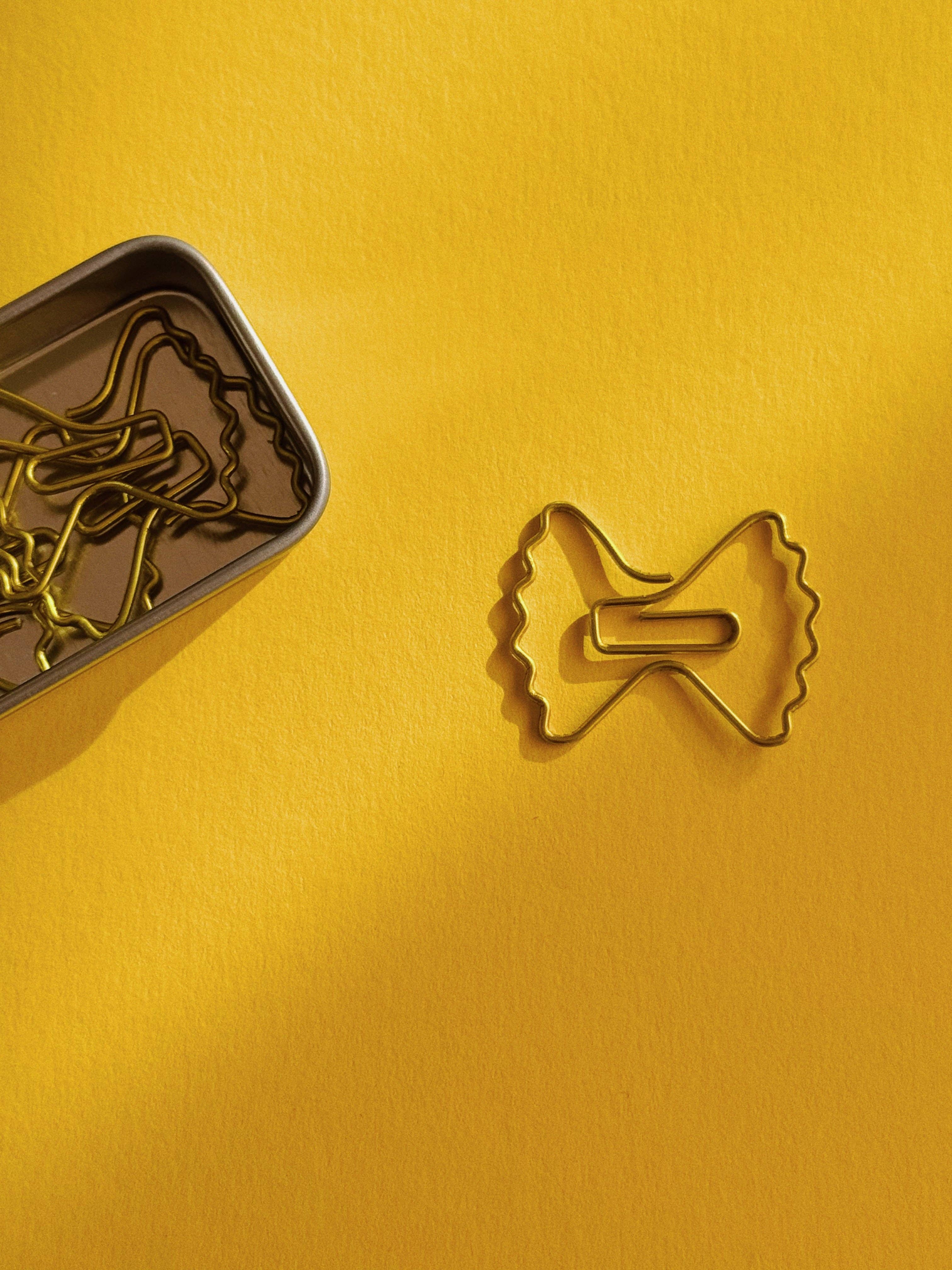 Set of 5 unique and versatile gold clips that can be used as paperclips, page holders, or bookmarks.