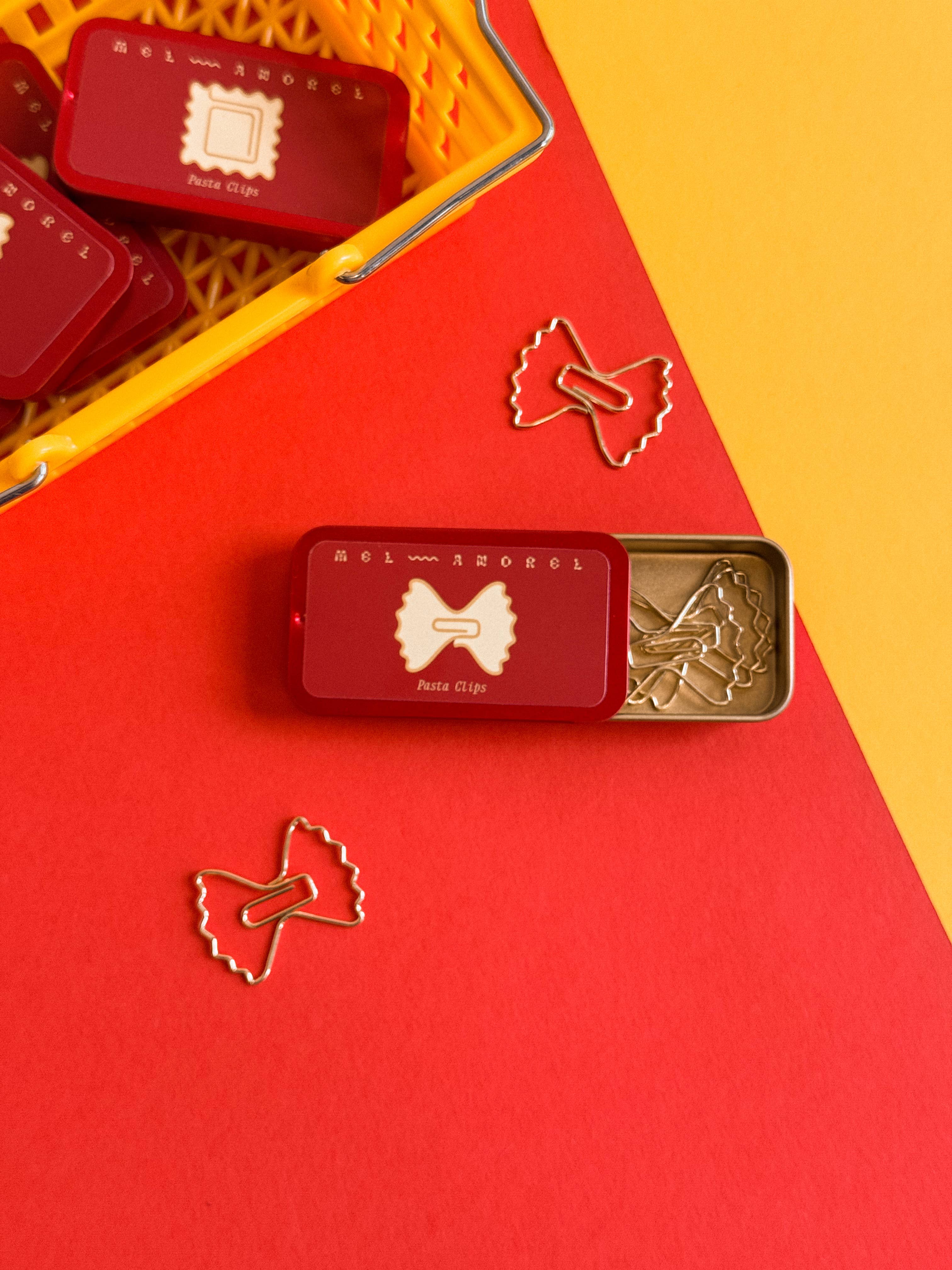 * Front label lists 'Pasta Clips' and photo of matching paperclip.