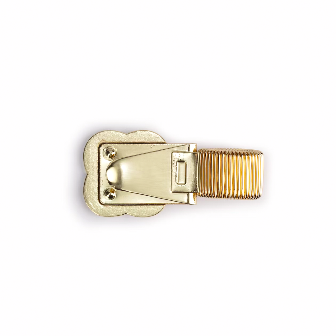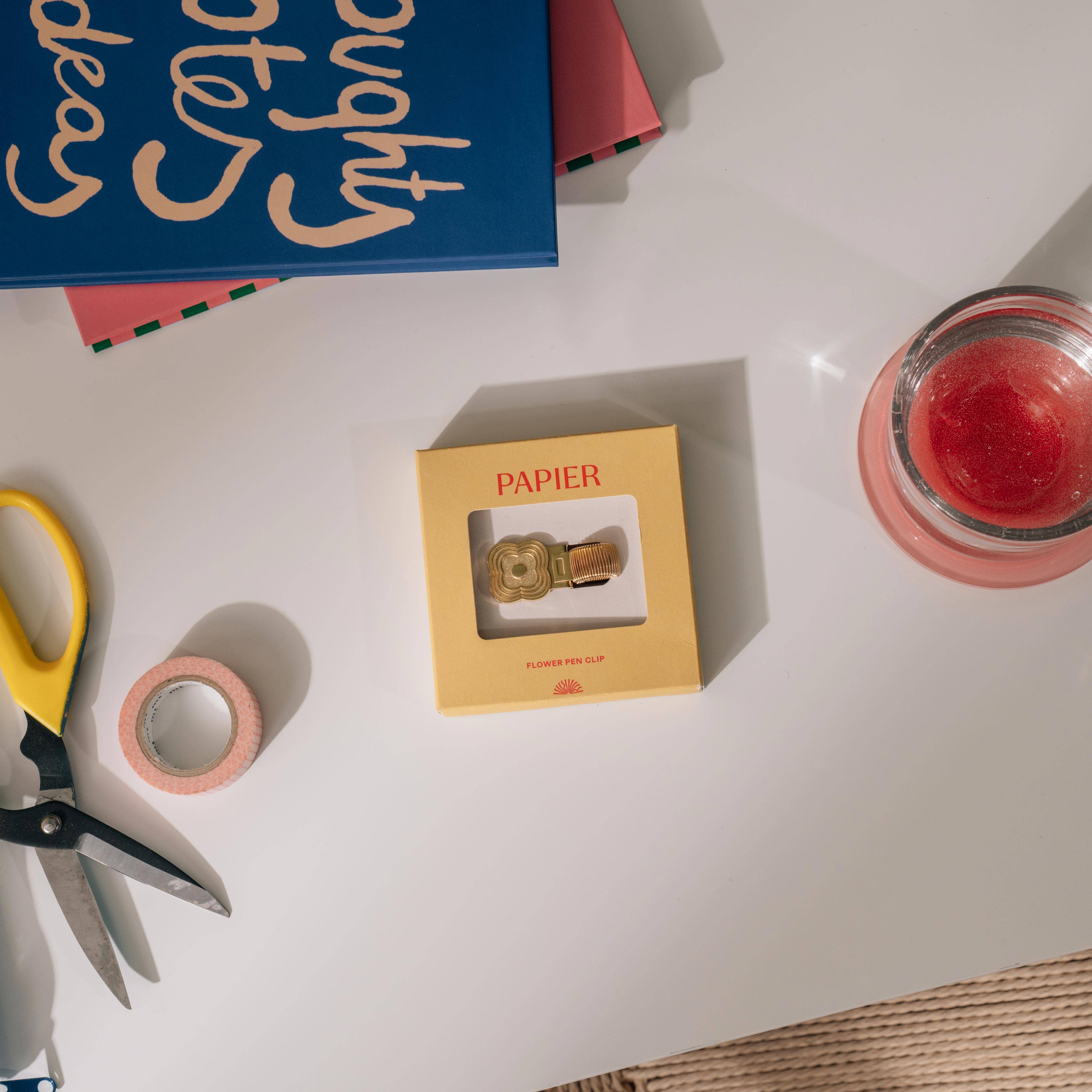 Add Papier's brass pen clips to your retail assortment - the perfect accessory to keep pens and pages together. Designed to attach easily to the cover of any notebook, journal, or planner, the adjustable clip features a stretchy slot that fits pens and pencils of all sizes. This practical yet stylish solution ensures customers never misplace their writing tools again. A great gift option for stationery enthusiasts, ideal for retailers looking to offer unique and functional accessories to their customers.