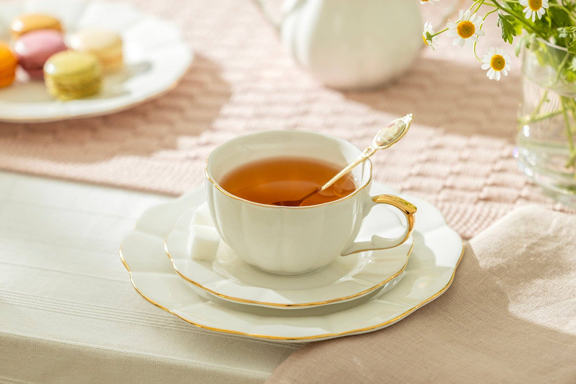 Grace Teaware White Gold Scallop 7oz Fine Porcelain Tea Latte Cup & Saucer