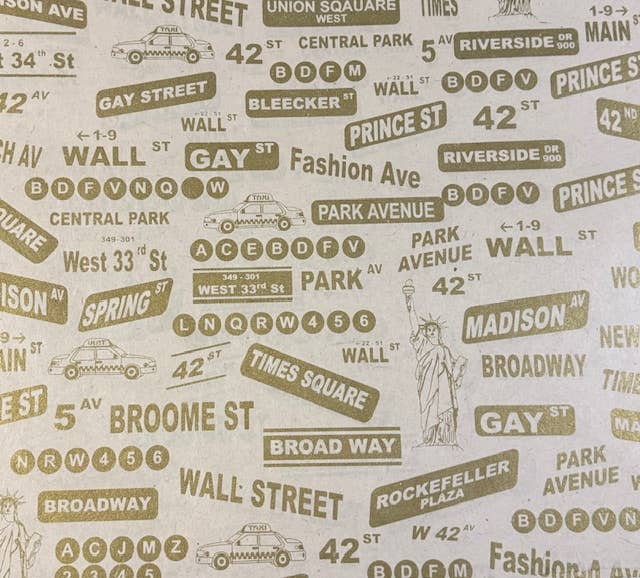 20x30 New York, gold on red