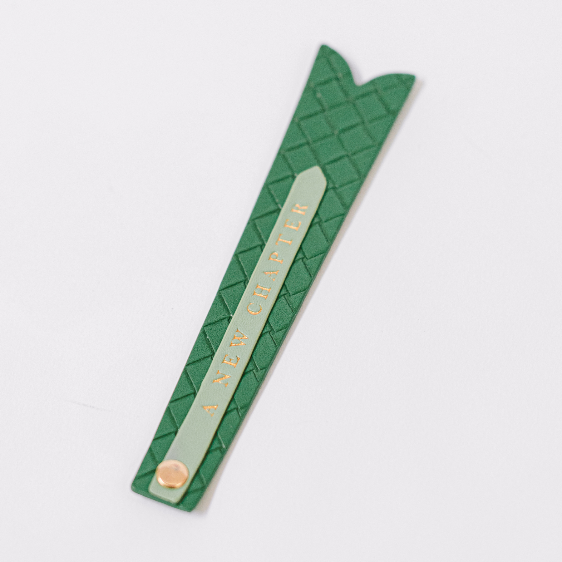 -Set includes 1 gold metal clip bookmark and 1 vegan leather bookmark with gold foil lettering