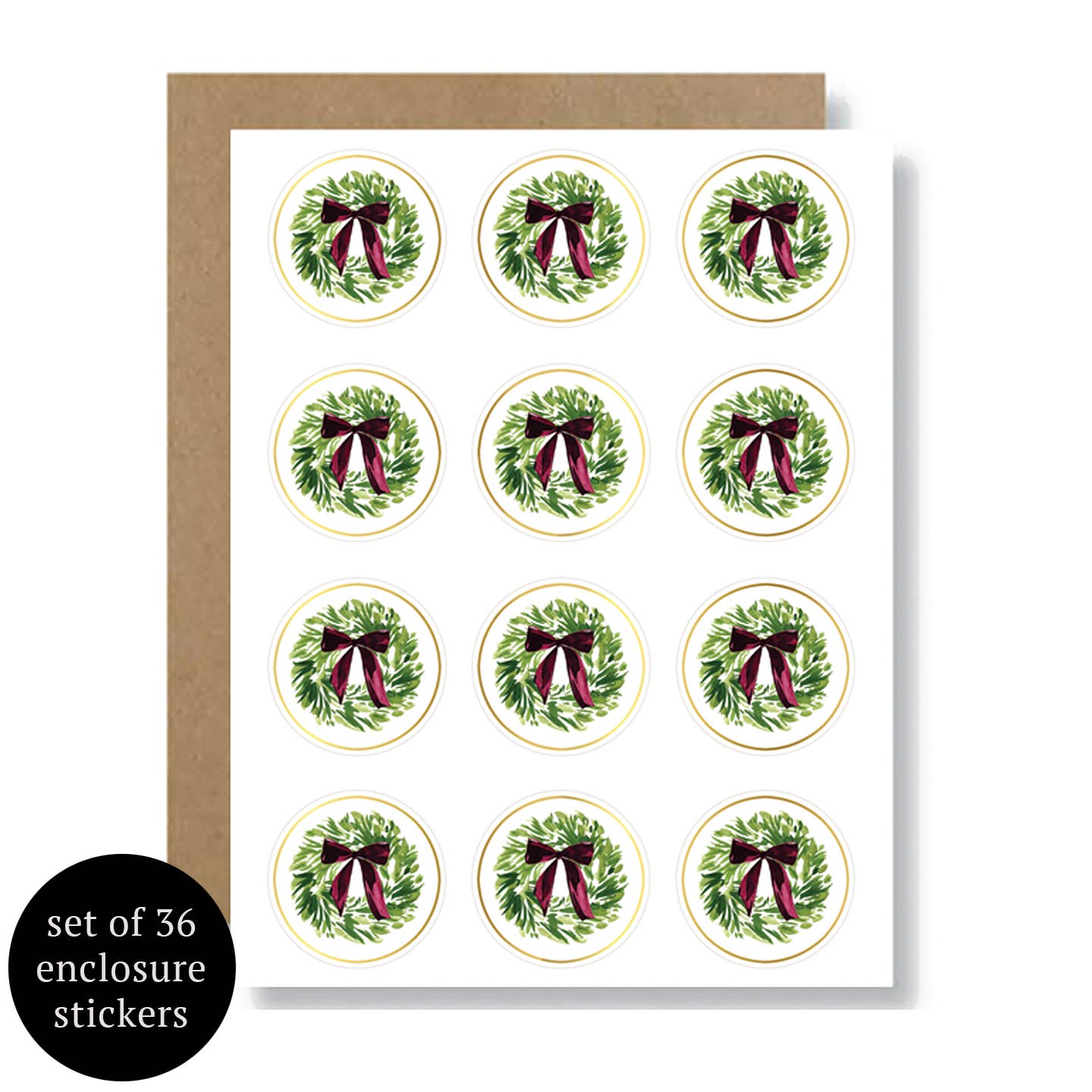Holiday Bow Wreath Enclosure Stickers - Set of 36 | Gift Tag