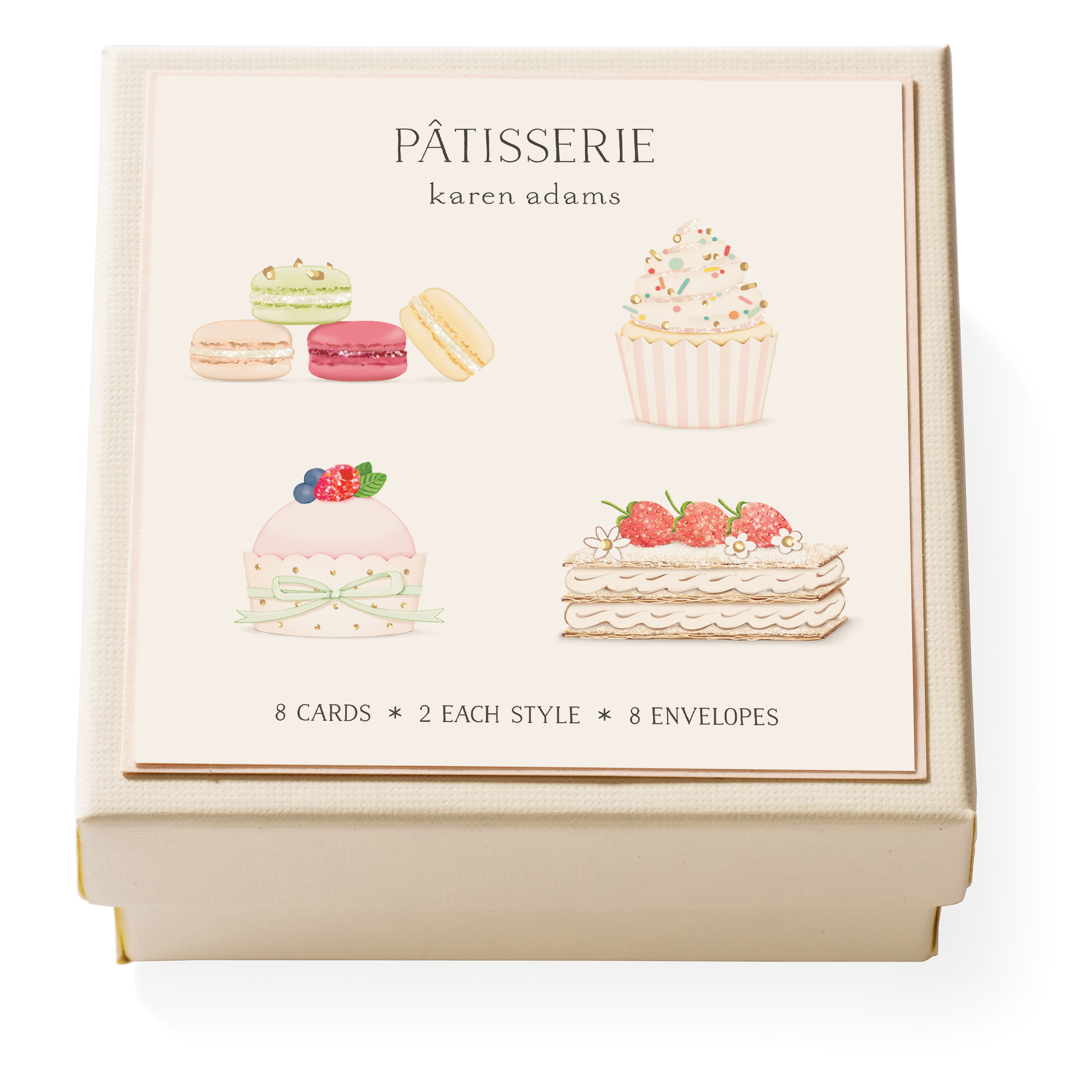 Our Vanilla Cupcake Gift Enclosure is printed and hand-glittered in Memphis, TN. Hand crafted artwork, full color ink printed on natural white paper, hand-glittered, and paired with a vellum envelope. Book-folded enclosure card, blank on the inside.