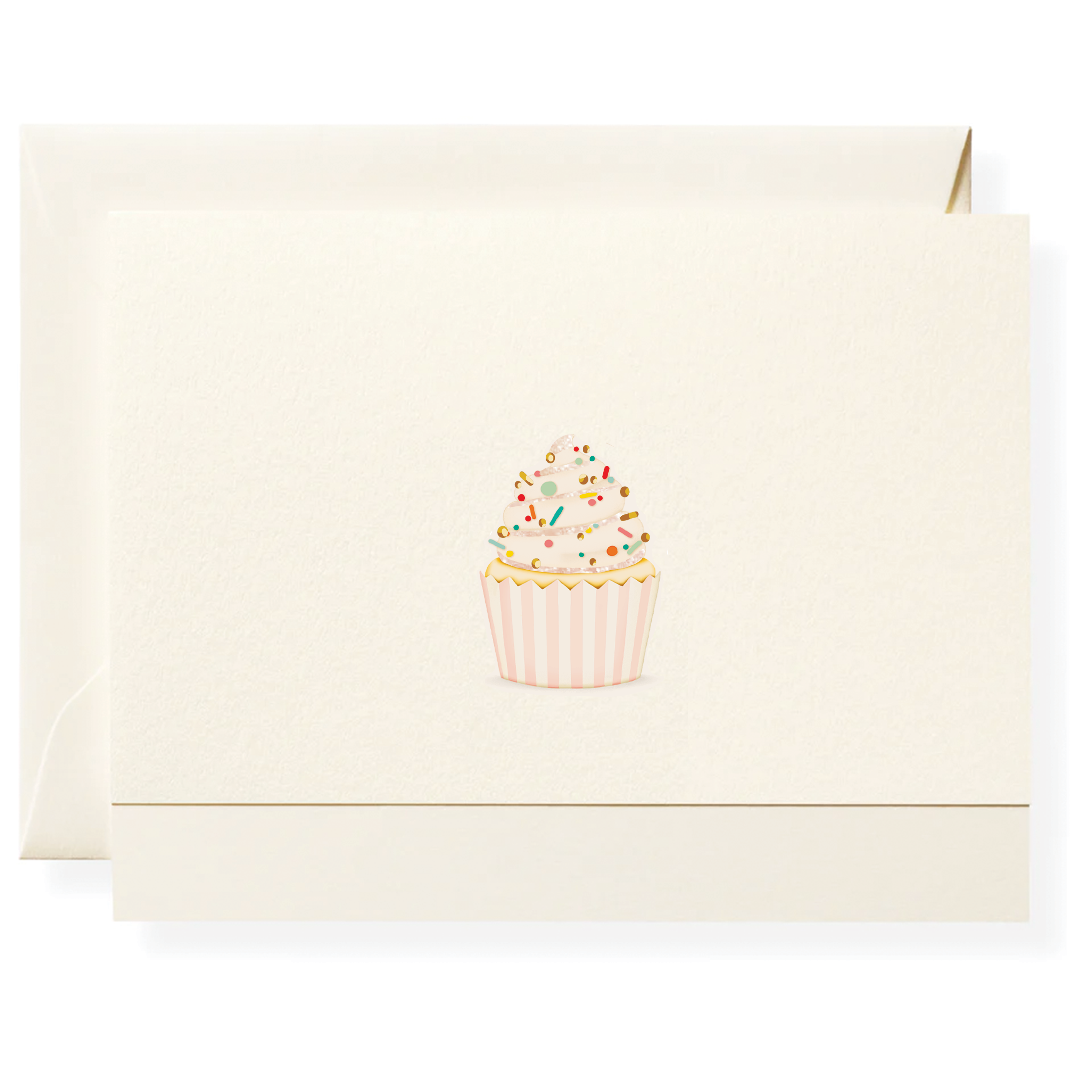 Our Vanilla Cupcake Note Card is printed and hand-glittered in Memphis, TN. Hand crafted artwork, full color ink printed on natural white paper, hand-glittered, and paired with a natural white envelope. Top-folded card, blank on the inside.