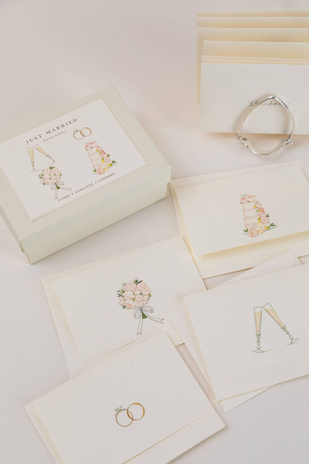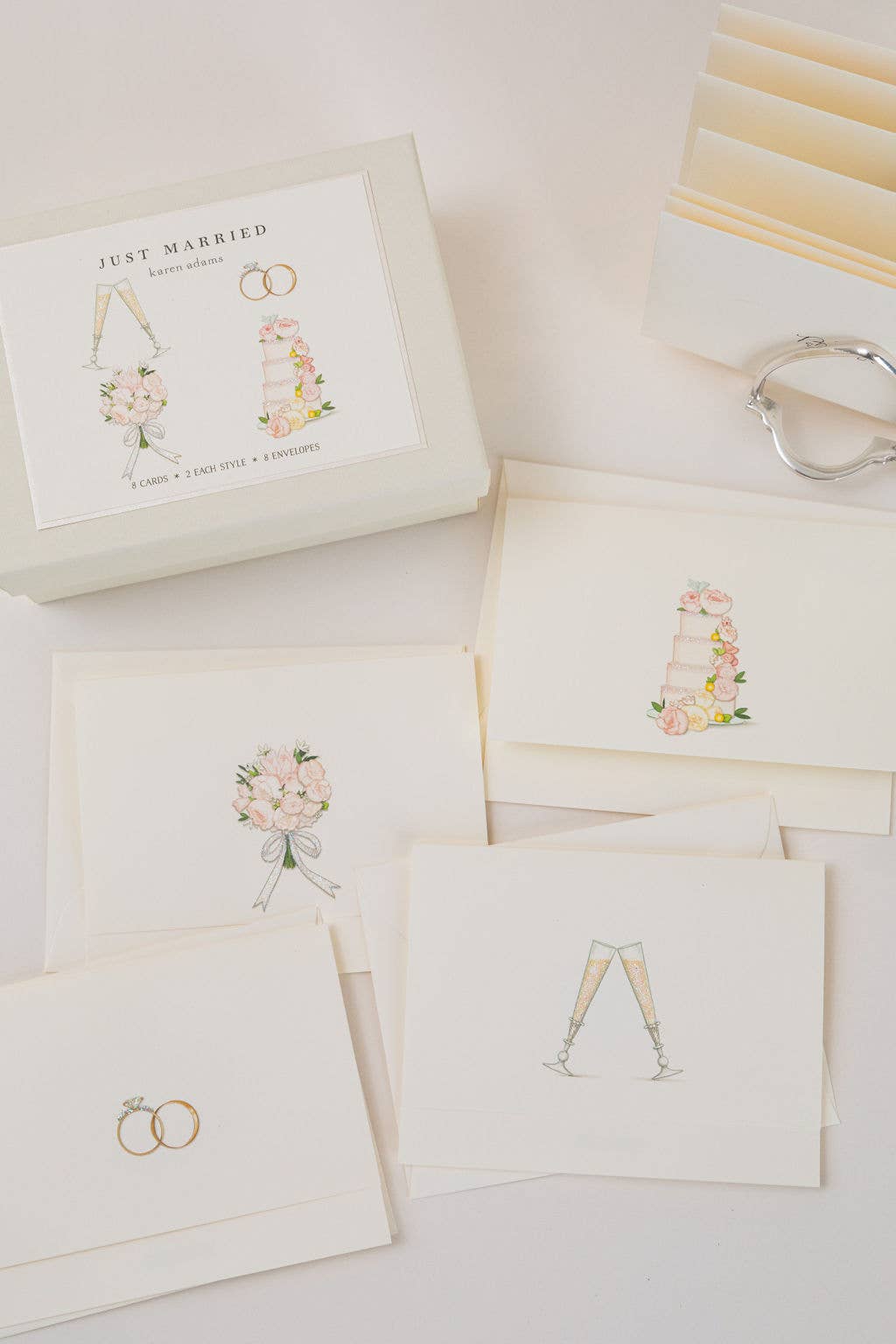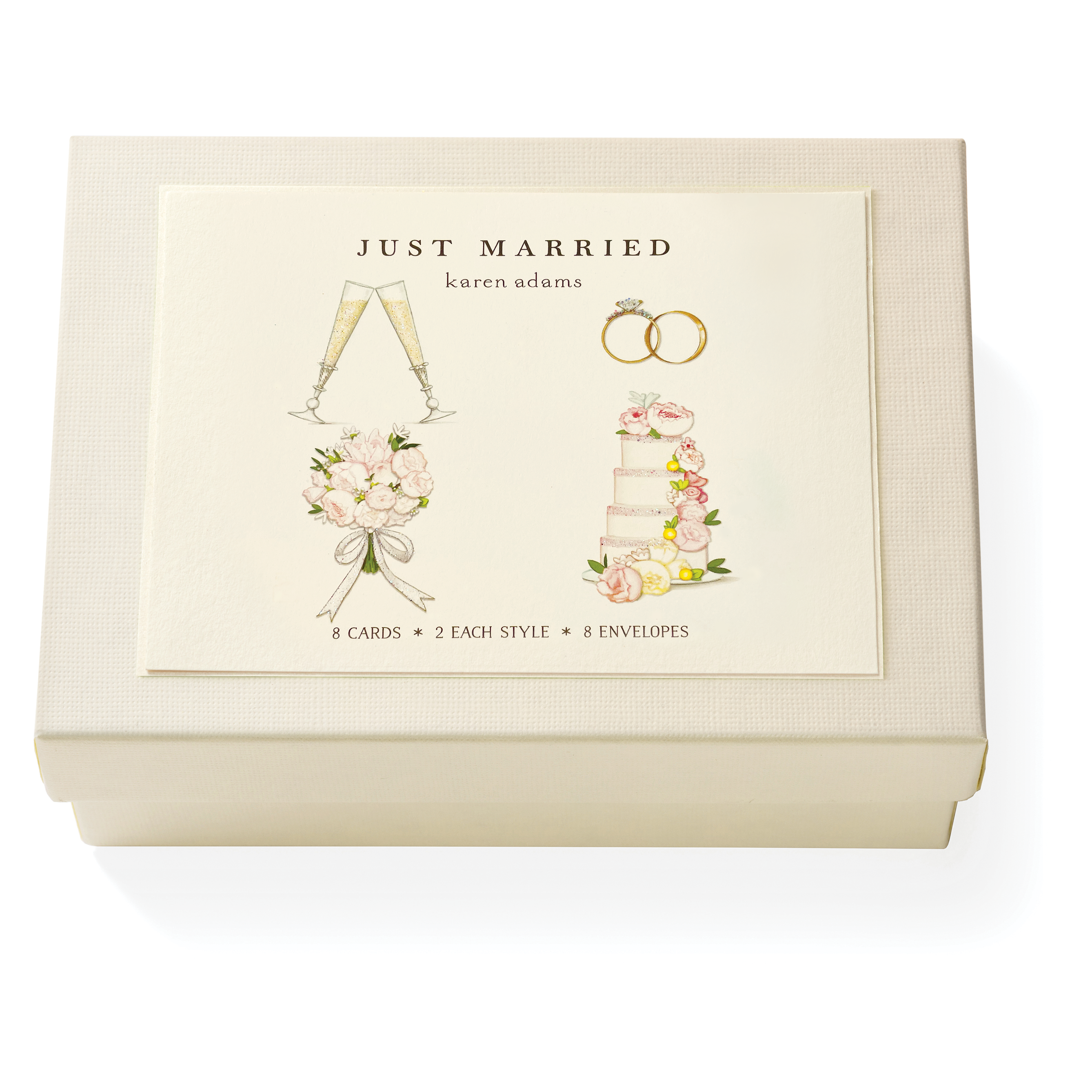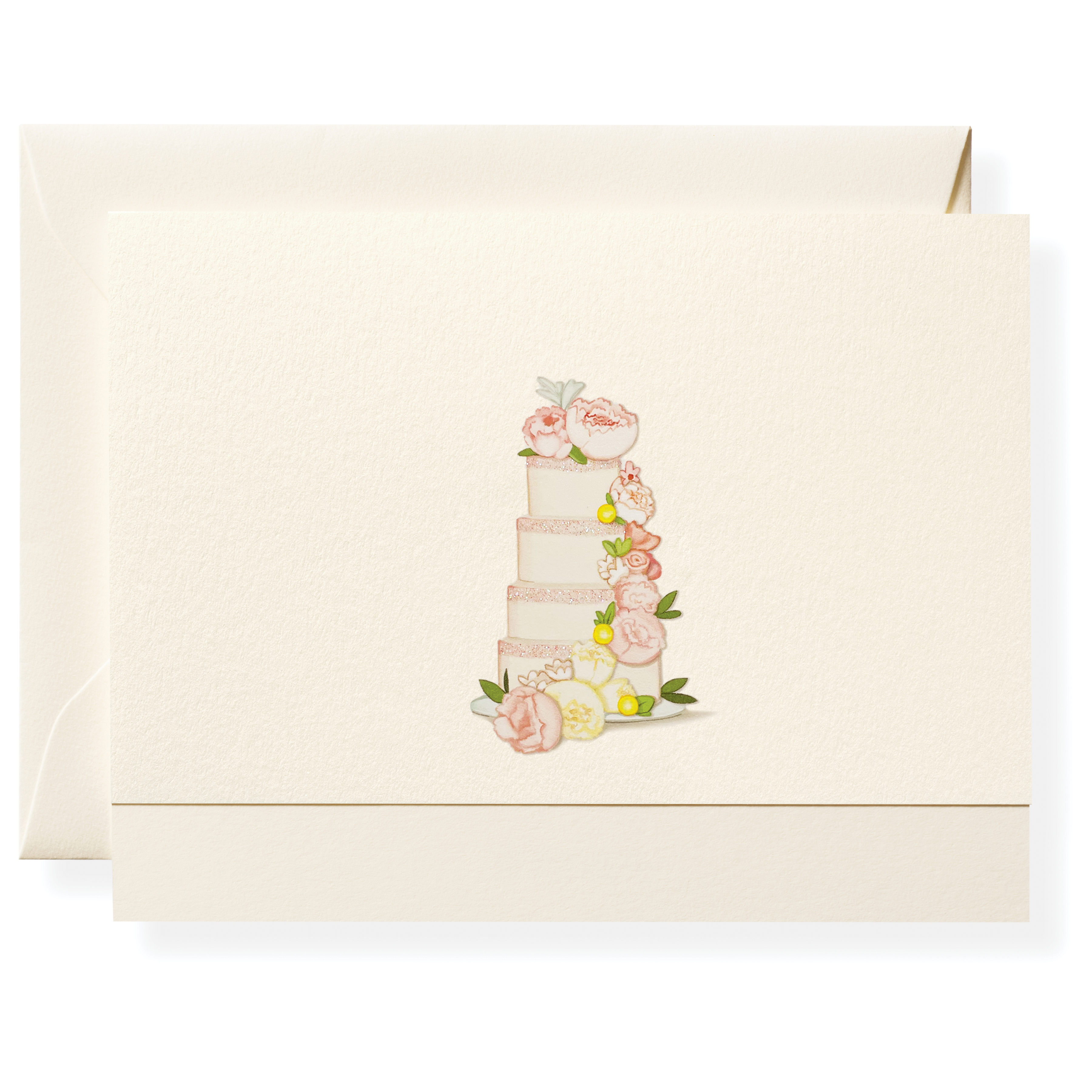 Our Wedding Cake Note Card is printed and hand-glittered in Memphis, TN. Hand crafted artwork, full color ink printed on natural white paper, hand-glittered, and paired with a natural white envelope. Top-folded card, blank on the inside.